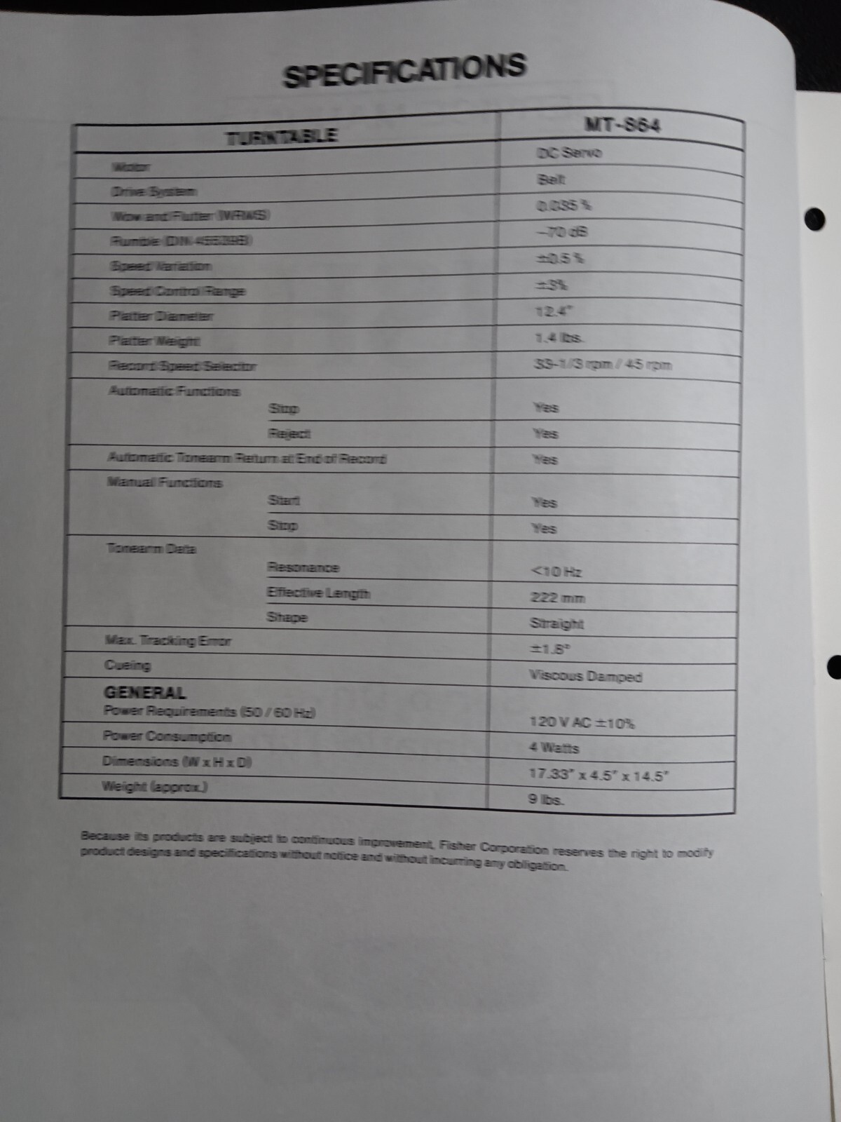 I am selling a Fisher MT-864 Service Manual Servo Drive Semi-Automatic Turntable Original.. Item was used at a repair center .. Item will be shipped USPS First Class or Media Mail..