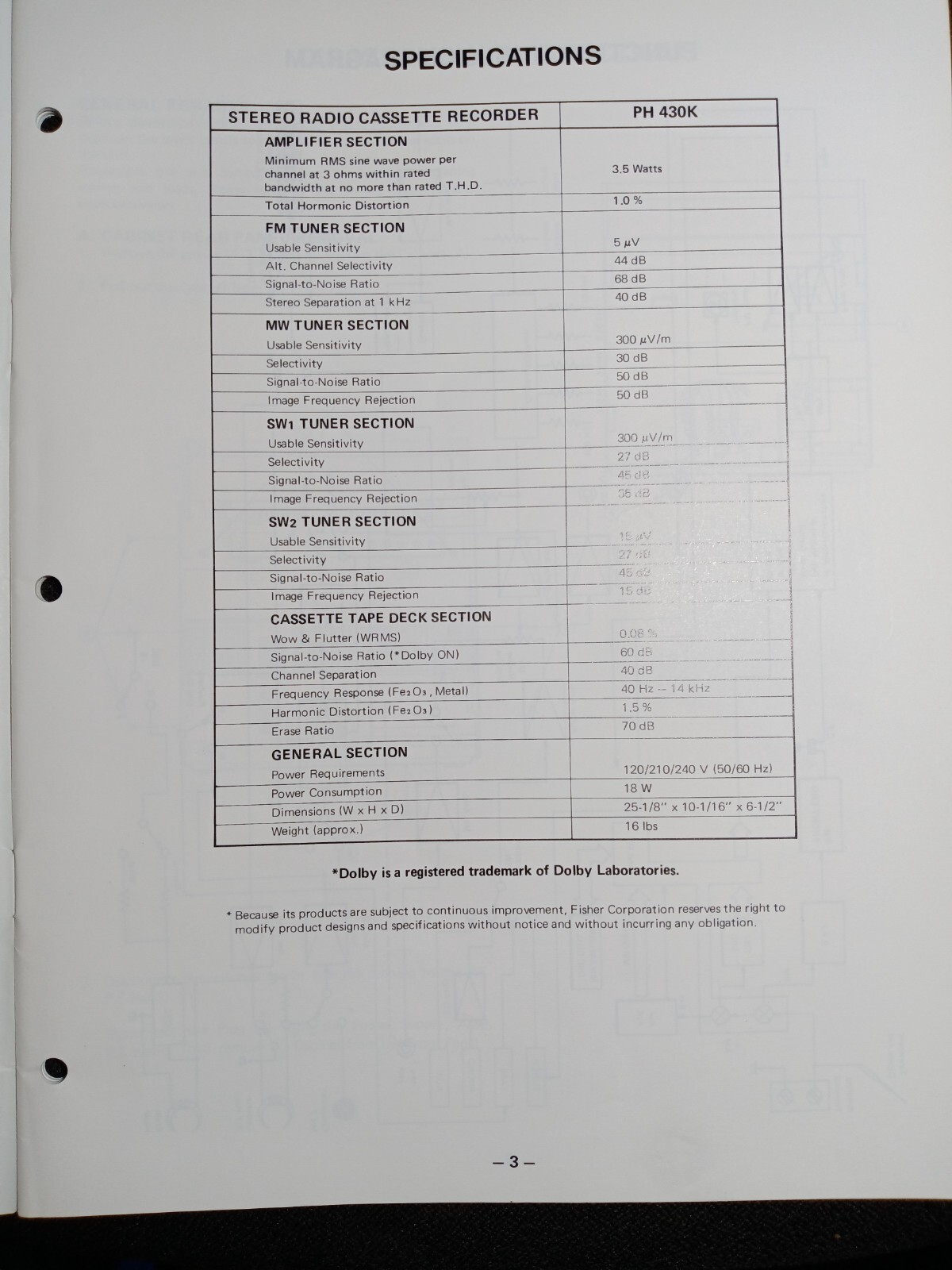 I am selling a Fisher PH-430K Service Manual Stereo High Fidelity System Original.. Item was used at a repair center .. Item will be shipped USPS First Class or Media Mail..