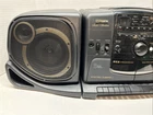 This Fisher PH-D340 Boombox is the perfect addition to any music lover's collection. With its CD and double cassette deck, you can enjoy your favorite tunes in high quality sound. The AM/FM band ensures a wide range of radio options, while the boombox feature provides a powerful sound experience. This boombox has been tested and works great, making it a reliable choice for any outdoor or indoor event. The Fisher brand is known for its quality and durability, ensuring that this boombox will last for years to come. There is some faint paint? splatter on it. Detachable speakers. CONTACT ME WITH YOUR ZIP CODE FOR A POSSIBLE SHIPPING DISCOUNT.