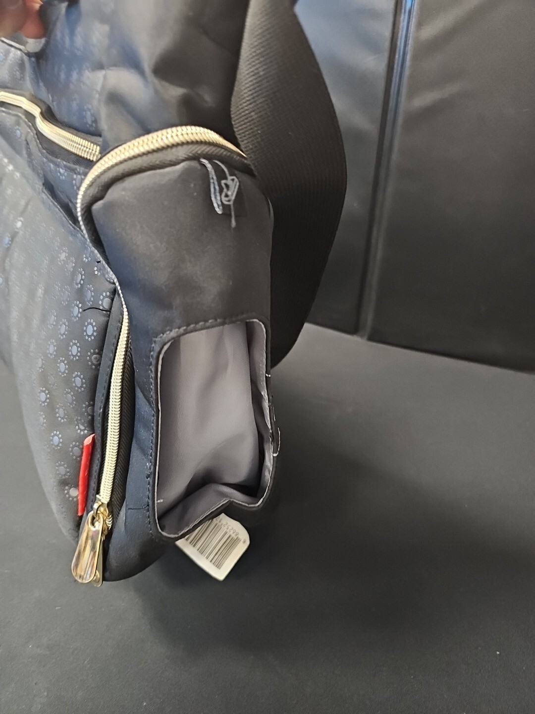 This Fisher-Price diaper baby bag in black is the perfect accessory for parents on-the-go. With a medium size and polka dot pattern, it's both stylish and functional. The backpack features a zippered front pocket for easy access to diapers and other essentials, and it's designed to fit most standard diapers. The unisex design and designer look make it a great choice for any parent, and the black color adds a touch of sophistication to any outfit. Whether you're running errands or heading out for a day trip, this diaper bag is a must-have for any parent. excellent condition