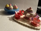 Vintage Fisher Price Tea for Two Set plus Green Toys Cupcakes with Stand Up for auction is a lot of pretend play perfect for a tea party. Set has Fisher Price Tea for Two set plus Green Toys cupcakes in stand. In great used condition with normal wear and tear which may include scratches or smudges which usually come from plastic being played, tea pot still has a little bit of liquid in it that disappears when tipped. See pictures for exactly what you are receiving. I do have other lots up for auction and I will combine shipping for multiple items won. Please wait for a final invoice from me at auctions end with a total or if doing buy now, add to cart, then request total from seller for combined shipping before making payment so you can save $$. No worries if you overpay on shipping, I do refund the excess shipping fees. Shipping includes delivery confirmation, envelope, tissue paper, tape and handling costs. Typically ~$1.50-2.00*** Will ship cheapest method which may include FedEx or UPS. Ships within 1-2 business days upon receiving payment. Payment required within 7 days of auctions end or purchase date. Will ship to lower 48 states-sorry no Hawaii or Alaska. Smoke free house! eMail any questions. Thank you for looking! ***I try very hard to keep my prices, including shipping, reasonable. It is necessary to add $1.50-$2.00 onto shipping or I will take a loss with every item shipped. When I use envelopes, tissue paper and tape, it adds ~$.45 to the cost of shipping, eBay boxes can add $.50. eBay takes ~13% of the shipping costs. So an item that costs $10 to ship, I'm charged $1.30 from eBay plus my costs of $.45 of supplies for a total of $1.75 which I add to the total of shipping. Thank you for understanding.