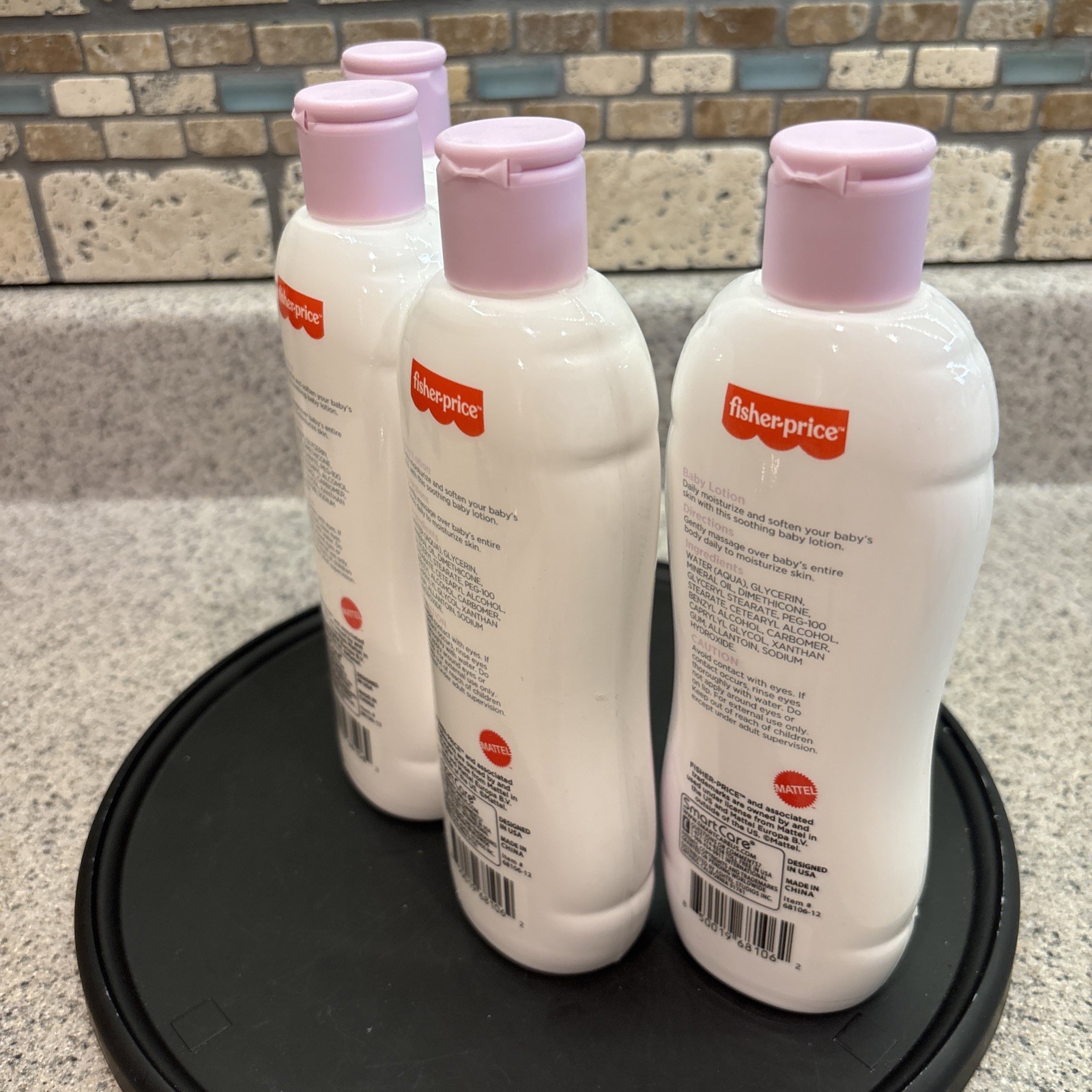 The Fisher Price Smart Care Baby Lotion is a 10 fl oz (296ml) bottle of lotion specifically designed for babies. It is free from harmful parabens and dyes, making it safe and gentle for young skin. The trusted Fisher-Price brand ensures quality and reliability in providing daily skin care for your little one. Perfect for soothing and hydrating your baby's skin during bath time or any time of day. See pictures for detail