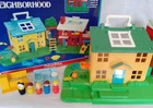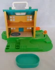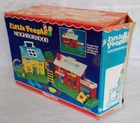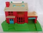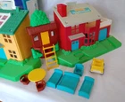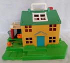 Vintage Fisher Price Deluxe Little People Neighborhood COMPLETE #2551 with Box. 1989-1990. Deluxe Play Set is really two different homes that are connected with a Brown Tree House with a Yellow Door (says Keep Out on it ), features automatic garage door opener, basketball set with tethered ball, swimming pool, upper deck with chute to pop up trash can, hinged skylight, Yellow Passenger Car with front and back seat, 2 Blue Single Beds with Teddy Bear quilt, Blue Stuffed Chair, 1 Blue Double Bed with Imprinted Quilt Pattern, Yellow Ladder for Tree House, 1 one Piece Blue Bath set, 1 one piece Yellow Kitchen Set, Yellow Kitchen Table and 2 Brown Chairs, Red Mom Blonde Hair, Blue Dad Brown Hair, Yellow Boy Brown Hair, Red Girl Blonde Hair and a Dog. This is really a Deluxe Play Set in great condition and Complete. It is very hard to find the tree in good shape with no breaks and having the Door and the Ladder. Item is used, and has play wear. May have scratches, chips or dings. Please see pictures. We Ship quick in a box to prevent damage, not an envelope. Please see pictures above. From time to time potential buyers like yourself have asked us questions, and so we have started to put together a Frequently asked question list. We are a real company and treat all our customers like we would want to be treated. We give you the highest level of service possible. If you have any problems contact us first and we will solve it to your satisfaction. Smoke Free Zone SHIPPING How and what company do you ship with? We use The United Parcel Service (UPS). We ship every item we sell in a box . Every item is packed with bubble wrap or tissue paper, and we use lots of tape on the box. All boxes are in nice shape. International - Sorry we are no longer doing International shipping.