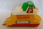 Vintage Fisher Pirce #932 Ferry Boat 1979-1980 1 Year. 8 Pieces. Boat Floats and has Wheels for Floor Play. Whistle on Bridge. Lower Deck has a Fold Down Ramp and Flip Up Front Rear Gates. Comes with 1 Single and 1 Passenger cars, Blue Mom, Orange Black Man, and Captain dark Blue with a Mustache and Blue Hat. Also comes with 2 Life Preservers. I have also included 2 more cars and 4 extra people. FOR YOUR INFORMATION: The 6 colored flags on the front deck are actually letters in the International Maritime Signal Flag Alphabet: White with blue center square = S Blue and Red horizontal - half = E White and blue notch = A (insert ship's bell here) Red/White/light blue tricolor = T Red and Yellow right diagonal-half flag = O Yellow with red left-diagonal stripes = Y Put 'em all together and they spell out two words: SEA TOY Item is used, and has play wear. May have scratches, chips or dings. Please see pictures. We Ship quick in a box to prevent damage, not an envelope. Please see pictures above. From time to time potential buyers like yourself have asked us questions, and so we have started to put together a Frequently asked question list. We are a real company and treat all our customers like we would want to be treated. We give you the highest level of service possible. If you have any problems contact us first and we will solve it to your satisfaction. Smoke Free Zone SHIPPING How and what company do you ship with? We use The United Parcel Service (UPS). We ship every item we sell in a box . Every item is packed with bubble wrap or tissue paper, and we use lots of tape on the box. All boxes are in nice shape. International - Sorry we are no longer doing International shipping.