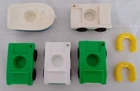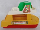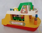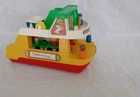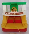Vintage Fisher Pirce #932 Ferry Boat 1979-1980 1 Year. 8 Pieces. Boat Floats and has Wheels for Floor Play. Whistle on Bridge. Lower Deck has a Fold Down Ramp and Flip Up Front Rear Gates. Comes with 1 Single and 1 Passenger cars, Blue Mom, Orange Black Man, and Captain dark Blue with a Mustache and Blue Hat. Also comes with 2 Life Preservers. I have also included 2 more cars and 4 extra people. FOR YOUR INFORMATION: The 6 colored flags on the front deck are actually letters in the International Maritime Signal Flag Alphabet: White with blue center square = S Blue and Red horizontal - half = E White and blue notch = A (insert ship's bell here) Red/White/light blue tricolor = T Red and Yellow right diagonal-half flag = O Yellow with red left-diagonal stripes = Y Put 'em all together and they spell out two words: SEA TOY Item is used, and has play wear. May have scratches, chips or dings. Please see pictures. We Ship quick in a box to prevent damage, not an envelope. Please see pictures above. From time to time potential buyers like yourself have asked us questions, and so we have started to put together a Frequently asked question list. We are a real company and treat all our customers like we would want to be treated. We give you the highest level of service possible. If you have any problems contact us first and we will solve it to your satisfaction. Smoke Free Zone SHIPPING How and what company do you ship with? We use The United Parcel Service (UPS). We ship every item we sell in a box . Every item is packed with bubble wrap or tissue paper, and we use lots of tape on the box. All boxes are in nice shape. International - Sorry we are no longer doing International shipping.