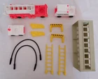 Vintage Fisher Pirce Play Family Fire Station Complete, #928 1980-1982 17 Pieces. Included are: Fire Station with Door that goes up and down, Bell Rings when fire door opened with crank, Chief's Car, Ambulance, Fire Truck with 2 Stabelizers, 2 Hoses, 2 Ladders, Practice Tower, 2 Barriers, 2 Firemen with Red Hats, 1 Fireman with a White Hat, and a Dalmation Dog. Real nice set. Item is used, and has play wear. May have scratches, chips or dings. Please see pictures. We Ship quick in a box to prevent damage, not an envelope. Please see pictures above. From time to time potential buyers like yourself have asked us questions, and so we have started to put together a Frequently asked question list. We are a real company and treat all our customers like we would want to be treated. We give you the highest level of service possible. If you have any problems contact us first and we will solve it to your satisfaction. Smoke Free Zone SHIPPING How and what company do you ship with? We use The United Parcel Service (UPS). We ship every item we sell in a box . Every item is packed with bubble wrap or tissue paper, and we use lots of tape on the box. All boxes are in nice shape. International - Sorry we are no longer doing International shipping.