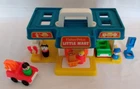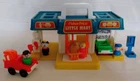 Vintage Little People Mini Mart #2580 1987-1989 COMPLETE Convenience Store Service Station with Car Wash and Automatic Doors, Clakaty Gas Pump and Cashier Counter. Included are: Building, RARE Blue Phone (this is very hard to find, usually a Yellow Phone is used), RARE Green and White Car with a tiny hole on bottom so Tow Truck can tow it. This car is also hard to find, Grocery Cart, and Groceries, Red Blonde Mom, Green Dad, Police Girl (in Blue) a Dog, and Tow Truck. Item is used, and has play wear. May have scratches, chips or dings. Please see pictures. We Ship quick in a box to prevent damage, not an envelope. Please see pictures above. From time to time potential buyers like yourself have asked us questions, and so we have started to put together a Frequently asked question list. We are a real company and treat all our customers like we would want to be treated. We give you the highest level of service possible. If you have any problems contact us first and we will solve it to your satisfaction. Smoke Free Zone SHIPPING How and what company do you ship with? We use The United Parcel Service (UPS). We ship every item we sell in a box . Every item is packed with bubble wrap or tissue paper, and we use lots of tape on the box. All boxes are in nice shape. International - Sorry we are no longer doing International shipping.