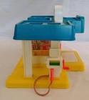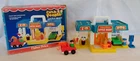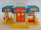 Vintage Little People Mini Mart #2580 1987-1989 COMPLETE Convenience Store Service Station with Car Wash and Automatic Doors, Clakaty Gas Pump and Cashier Counter. Included are: Building, RARE Blue Phone (this is very hard to find, usually a Yellow Phone is used), RARE Green Car with a tiny hole on bottom so Tow Truck can tow it. This car is also hard to find, Grocery Cart and Groceries, Red Blonde Mom, Green Dad, Police Girl (in Blue) a Dog, and Tow Truck. Item is used, and has play wear. May have scratches, chips or dings. Please see pictures. We Ship quick in a box to prevent damage, not an envelope. Please see pictures above. From time to time potential buyers like yourself have asked us questions, and so we have started to put together a Frequently asked question list. We are a real company and treat all our customers like we would want to be treated. We give you the highest level of service possible. If you have any problems contact us first and we will solve it to your satisfaction. Smoke Free Zone SHIPPING How and what company do you ship with? We use The United Parcel Service (UPS). We ship every item we sell in a box . Every item is packed with bubble wrap or tissue paper, and we use lots of tape on the box. All boxes are in nice shape. International - Sorry we are no longer doing International shipping.