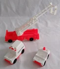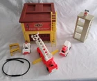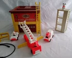 Vintage Fisher Price Play Family Fire Station #928 Complete 1980-1982. Great Condition. 17 Pieces: Fire Door Opens and Bell Rings. Comes with: Base Fire Station, Training Tower, Chief's Care, Ambulance, Fire Truck with Bucket, 2 Fire Truck Stabilizers, 2 Barriers, 2 Piece Ladder, 2 Hoses that connect to each other 3 Firemen, 2 with Red Hats and 1 with White Hat and a Dalmatian Dog. We Ship quick in a box to prevent damage, not an envelope. Please see pictures above. From time to time potential buyers like yourself have asked us questions, and so we have started to put together a Frequently asked question list. We are a real company and treat all our customers like we would want to be treated. We give you the highest level of service possible. If you have any problems contact us first and we will solve it to your satisfaction. Smoke Free Zone SHIPPING How and what company do you ship with? This item is shipped by UPS GROUND. We ship every item we sell in a box . Every item is packed with bubble wrap or tissue paper, and we use lots of tape on the box. All boxes are in nice shape. International - Sorry we are no longer doing International shipping