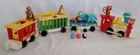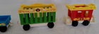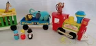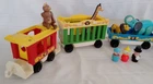 Vintage Fisher Price 4 Car Play Family Circus Train. #991, 1973-75 Complete. Comes with: Engine with Working Whistle, Gondola Car, Cage Car, Caboose, (If Cage Car is Green then Gondola Car is Blue and Vice Versa), Red Clown Yellow Hat. Short Lt. Blue Engineer, Short Black Ringmaster, (Small Mustache), Elephant, Lion, Bear, Monkey and Giraffe. Train is in Good Condition as are the Pieces. Item is used, and has play wear. May have scratches, chips or dings. Please see pictures. We Ship quick in a box to prevent damage, not an envelope. Please see pictures above. From time to time potential buyers like yourself have asked us questions, and so we have started to put together a Frequently asked question list. We are a real company and treat all our customers like we would want to be treated. We give you the highest level of service possible. If you have any problems contact us first and we will solve it to your satisfaction. Smoke Free Zone SHIPPING How and what company do you ship with? We use The United States Postal Service (USPS). We ship every item we sell in a box . Every item is packed with bubble wrap or tissue paper, and we use lots of tape on the box. All boxes are in nice shape. International - Sorry we are no longer doing International shipping.