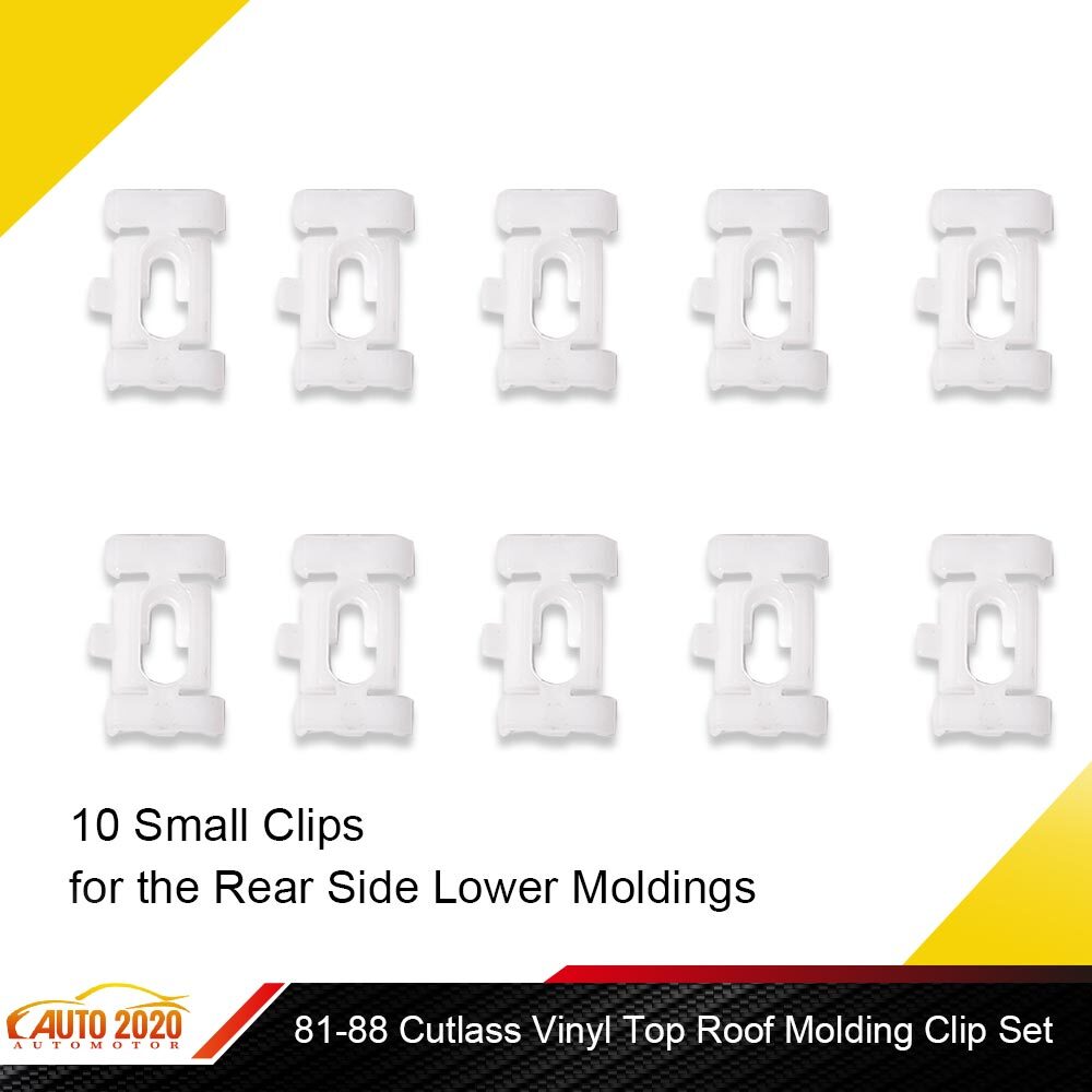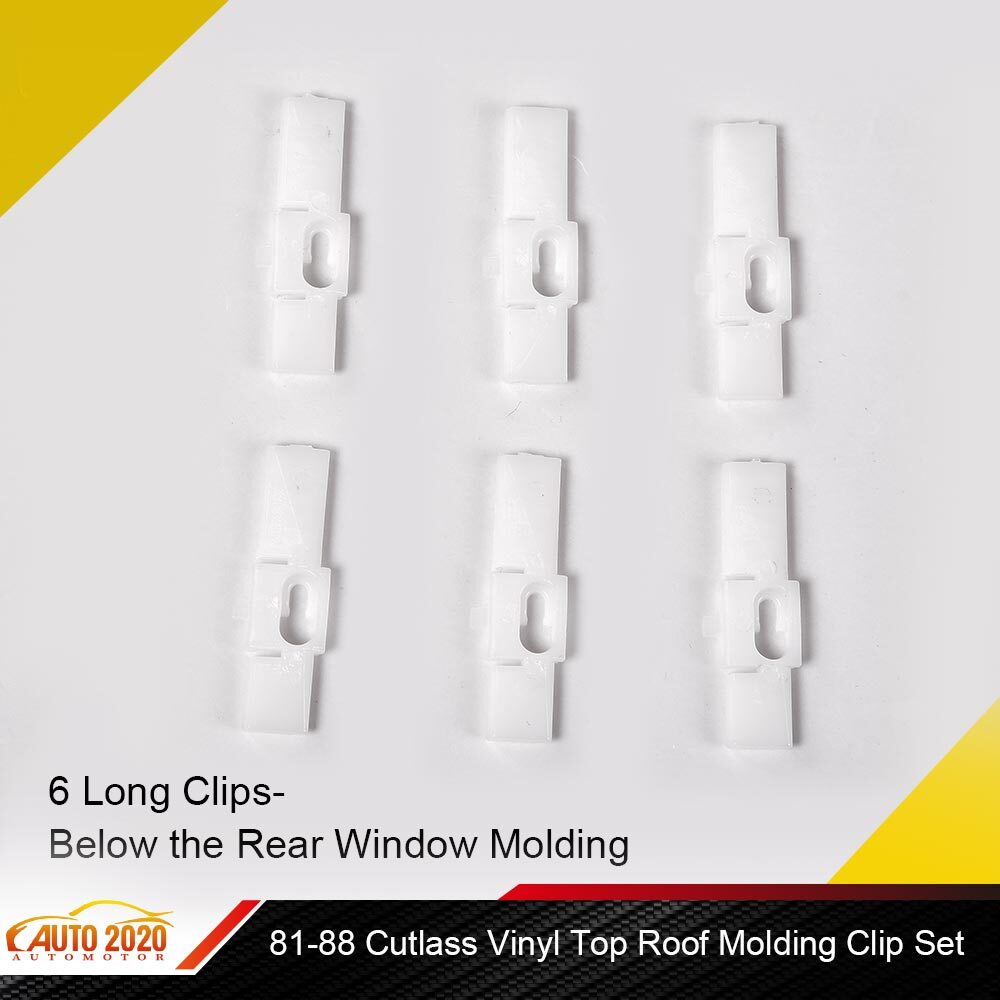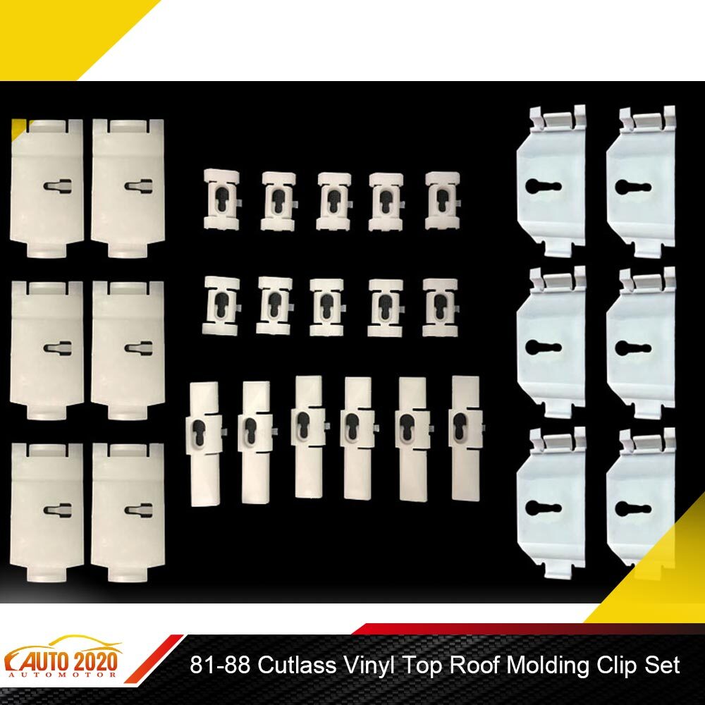 AUTOMOTO PRODUCT Fit For 81-88 Cutlass Vinyl Top Roof Molding Trim Retaining Mounting Clip Kit 28 Product Introduction Title : Retaining Mounting Clip Set 28 Pcs Application : Fit: 1981 - 1988 Cutlass Salon & Supreme Description : 100% Brand New. High-Quality ABS Plastic. These clips commonly break from age and during the process of removing the trim,s o we had these reproduced. 12 Large Clips GM # 12337978 for Side and Top Moldings 10 Small Clips GM # 202175051 - (Replaced by GM # 15633873) for the Rear Side Lower Moldings 6 Long Clips GM # 20218415 for Below the Rear Window Molding Package Includes : 1 SET (28 Clips Total) Note : All of the items in our shop will come to you with the tracking number. Visit shop home WELCOME to our ebay shop CONTACT US We Open 7 Days A Week ABOUT US ABOUT US: Welcome to GPLUS's eBay Store. We specialize in aftermarket automotive car parts and is the #1 industry distributor for affordable and quality products. Welcome to GPLUS's eBay Store. We specialize in aftermarket automotive car parts and is the #1 industry distributor for affordable and quality products. Welcome to GPLUS's eBay Store. We specialize in aftermarket automotive car parts and is the #1 industry distributor for affordable and quality products. SHIPPING Shipping Information All items will ship within 24 hours (Monday - Friday). Payment cleared/received on Friday will be shipped on the next business days (Monday or Tuesday). We are not responsible for carrier transit time. This information is provided by the carrier and excludes weekends and holidays. Note that transit times may vary, particularly during peak periods or in climate weather conditions, and that delivery times frames will need to be extended for any processing time frames in excess of 1-2 business days. excess of 1-2 business days. International Shipping: International buyers are responsible for possible customs fees, brokerage fees or duty fees. We would appreciate for understanding of tracking number would not be updated in between the city of departing in the U.S. and the city of destination. ATTENTION Cargo transportation Double check shipping address. We are not responsible for incorrect or undeliverable addresses. Please use Shipping & Payments tab on top of page for shipping details for your location. Transaction will be held until a full shipping amount received. Shipping address Some of the packages cannot be delivered to a PO Box. Customer is responsible to ensure PO Box address given is deliverable by the shipping company. Package will be held until a valid physical address is provided. Customer assumes shipping charges incurred in shipping to undeliverable address. Customs duties International buyers are responsible for all customs duties, taxes, and other applicable fees incurred by the country's customs/border regulations. Please contact customs for more information. We are not responsible for any changes to address after item has been shipped. RETURN please notify us within 30 days after you've received your purchased item. Return Policy: Buyers pay for return shipping fee. Items to be returned must be in resalable condition.14 Days money back, please notify us within 14 days after you've received your purchased item. If your order has been received and it is not what you ordered, or if your item has a manufacturer defect, please contact us within 14 days from delivery date. And you must contact us to request an Return Merchandise Authorization Number (RMA). No return package will be accepted without a valid RMA number. All products are covered by our warranty against defects. EMAIL click here for questions All return requests must be submitted through your eBay account. Iterms and Condition For emissions related items, please check with your local jurisdiction for emission specific requirements before purchasing. All items do not come with installation instruction unless otherwise specified. If item is questionable, please consult your local professional/mechanic before making purchase.