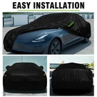 Feature: đăWeatherproof Full Protector Car Coveră Crafted from high density polyester taffeta with silver coating, the sturdy material is heat insulation, sun-proof, windproof, waterproof, hail-proof, snow-proof, dust-proof scratch resistant. đăReflective StripsăThe 6 fluorescent reflective strips will shine at night to remind others away from the car and help you find the car quickly.With ear design for covering car mirrors. đăWindproof & Anti-scratchăDouble thread sewing,not easy to tear off;Elastic band,Windproof is stronger. đăUniversal Car CoverăThis Car Cover size is 193" L X 71" W X 59" H,. please actually measure your car size before purchasing. đăEasy InstallationăEasy to put on and off, adjustable straps with durable buckle at the bottom to protect your car cover in heavy wind from blowing off. Specifications: Type: Full Car Cover Size: 193*71*59" Color: Black Material: 190T Polyester Taffeta Note: In Different Years, The Length Of The Car Is Different. Please Choose The Cover According To Your Car Length. Package include: 1 * Car Cover 1 * Storage Bag