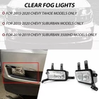 Fits 2015-2020 Chevy Suburban/Tahoe Fog Light Lamp w/ Chrome Trim Switch+Harness Feature 100% Brand New Clear Lens Chrome Housing Enhance visibility during night time, heavy rain, snow, or dense fog Polycarbonate Lens with a superior UV protection and a high impact resistance Heavy duty housing prevents moisture and dust from getting inside the housing Professional installation is highly recommended Fitment 2015-2020 Chevrolet Suburban 2016-2019 Chevrolet Suburban 3500 HD 2015-2020 Chevrolet Tahoe Package Includes A Pair of Fog Lights with Bulbs, Switch,Harness