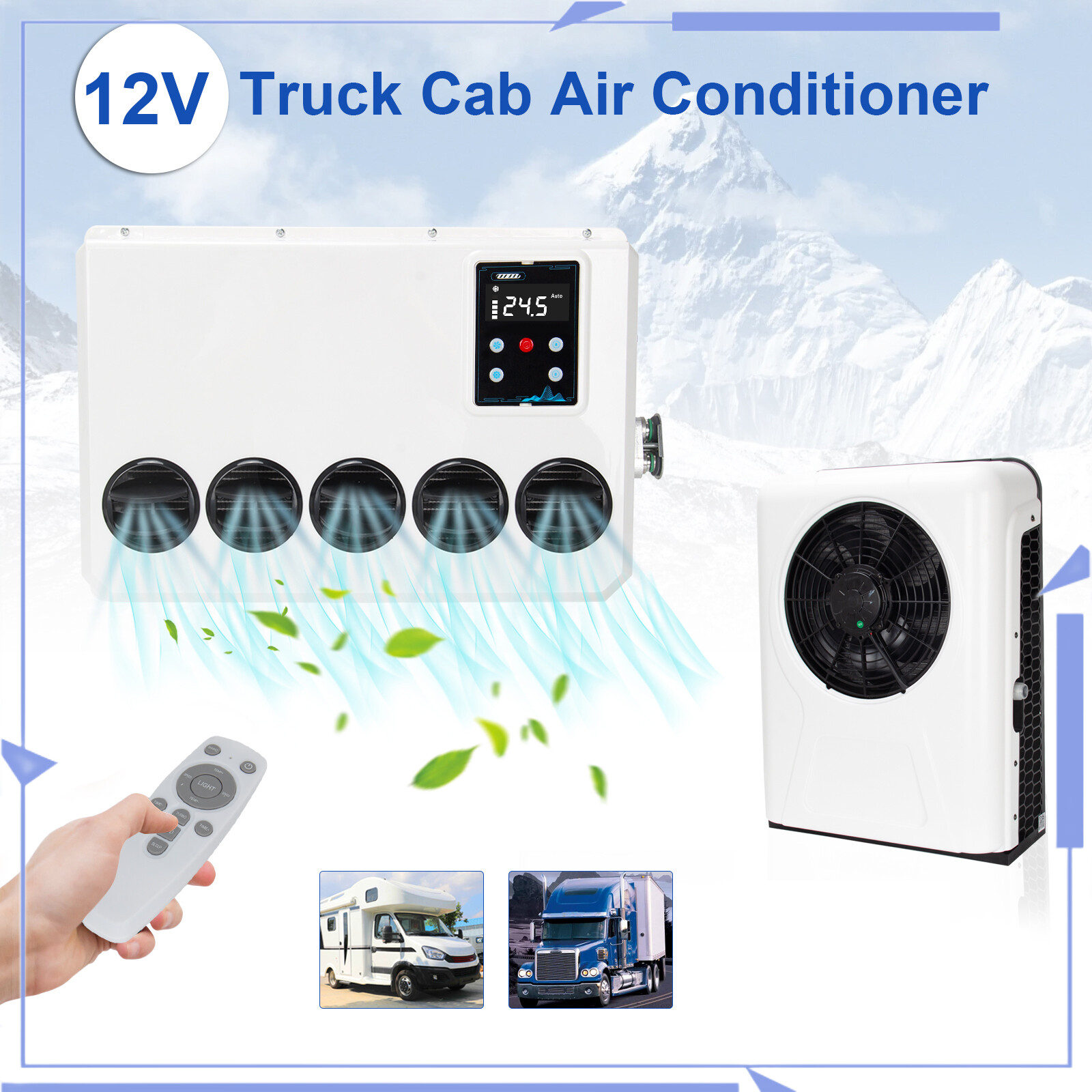 Specification: Type: Split AC Air Conditioner Cooling capacity: 12000 BTU Certification: ISO/CE Controller Type: Remote Control Volt: 12V Current: 60-80A Rated Power: 960W Refrigerant: R134A (600g) Cooling capacity: 1000W-3000W (3400-10238BTU) Oil: 90ml-120ml POE68 Noise: 70db Function: Air Cooling Material: Aluminum,Metal,Steel Mounting Style: Screw-On Outdoor Unit Size:L:660 * W:490 * H:210 (Mm) / L:26 X W:19 X H:8 - Inches Indoor Unit Size:L:495 * W:355 * H:190 (Mm) / L:19.5 X W:14 X H:7.5 - Inches Control Method: Intelligent Drive Drive Mode: Independent OE/OEM Part Number: Semi Truck air conditioner 12V, 12V air conditioner, 12V Truck air conditioner Features: High Quality, Durable, Easy Installation, Low Noise, Energy Saving, Environmental Protection, Fast Cooling, 100% Leak Tested Fitment: Universal Item Included: 1Set Electric Air Conditioner Features: ·12V air conditioner parameters 12v air conditioner Rated voltage: 12V, rated current: 60-80A, power: 960W, cooling capacity: 1000W-3000W, inner unit size: L:495 * W:355 * H:190 (Mm) / L:19.5 X W:14 X H:7.5 - Inches, outer unit size: L:660 * W:490 * H:210 (Mm) / L:26 X W:19 X H:8 - Inches, please You carefully compare whether the parameters meet your needs. ·Energy saving This RV air conditioner has a large layout freedom, and the inner unit is small in size. It can be installed according to your needs. The air conditioner can be turned on after parking, does not consume gasoline, and has low noise. When you are parking or waiting, use 480 AH car battery, can be used for 6-8 hours, does not require fuel to drive at all, saves a lot of fuel costs, and can still enjoy a comfortable, quiet and cool environment in hot summer. ·Wide range of applications Our 12V air conditioner is suitable for all kinds of models, RVs, heavy trucks, light trucks, engineering vehicles, forklifts, cranes, oil to electricity, etc. All vehicles are suitable for installing our 12V air conditioner, in the hot summer Provide you with an environment that is both environmentally friendly and economical and cool and comfortable. ·High quality material This truck air conditioner has a beautiful appearance and is made of high-quality steel plate, which is strong and durable, and this DC electric air conditioner adopts a high-efficiency electric scroll compressor, which is anti-vibration, high energy efficiency, low noise, and can keep cool even when the engine is off. ·Quality Assurance Our Parking air conditioner are of high quality. Helps drivers get enough rest and improves road safety, We include installation instructions, If you have any questions during installation and use, you can contact us at any time, and we will provide solutions and solutions that satisfy you. Package Include: 1 Set Air Conditioner On Jun 6, 2025 at 21:25:30 PDT, seller added the following information: