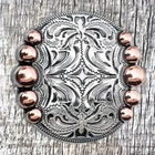 Description Antique nickel and copper-plated finish 5 berry screw back 1-1/2" concho . Image Color We have made every effort to make the colors on screen as close as possible to the colors of the products you purchase. However, we cannot guarantee an exact match in colors, and the images on this site should not be relied on as such. The representation of colors are limited by technology and may vary due to screen and printer settings. Shipping and Sales Tax Buyer pays Shipping and Handling Fees. Residents of Texas will be subject to 8.25% sales tax. *Combined Shipping : We offer combined shipping on multiple auctions or buy it now items as long as orders are placed within the same business day. Texas Uniques 512 US HWY 287 South Henrietta, TX 76365 All of our items are "New" reproduction castings. All sizes and weights are approximate. Color and shade may vary from item to item. Cast iron products may show some degree of imperfections, rust or discoloration. Thank you for shopping with TEXAS UNIQUES!