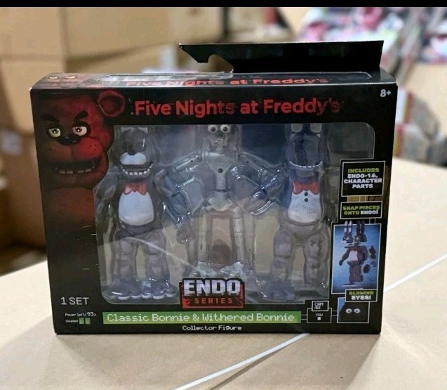 The "Five Nights at Freddy's Endo Series Classic Bonnie Withered" is a 6-inch action figure by Jazwares. This highly detailed toy features the character Bonnie from the popular franchise "Five Nights at Freddy's," known for its horror-themed TV show. The toy comes in a multicolor design, boxed packaging, and is an original licensed reproduction from 2025. Perfect for fans of the series, this collectible item is a must-have for any FNAF enthusiast looking to add a spooky addition to their collection.