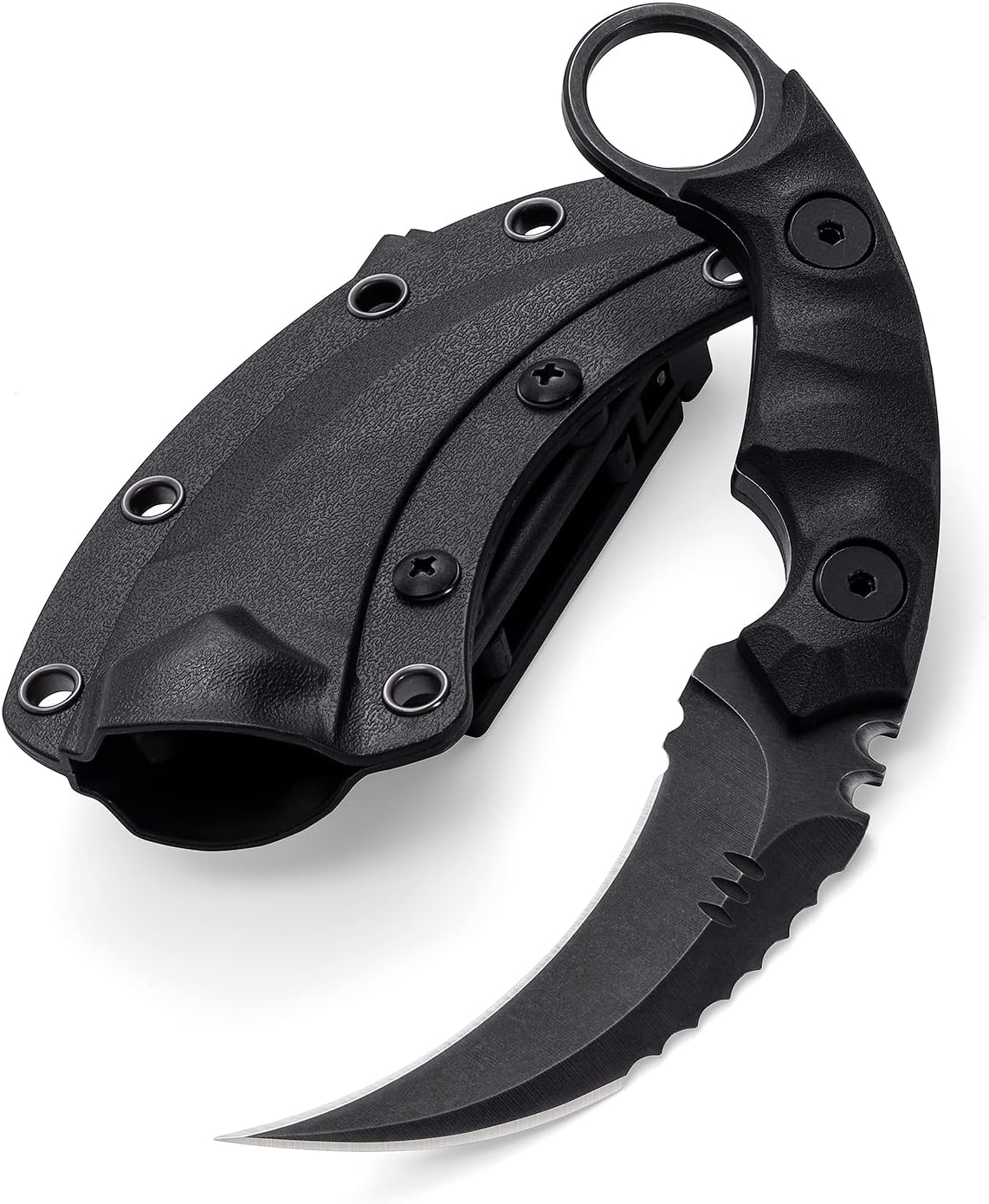 【D2 STEEL STRENGTH AND DURABILITY】 D2 Steel is tried-and-true performance steel. This blade has been tested in various categories: toughness, strength (lateral stress), and edge honing and holding ability. The mesmerizing knife has been masterfully crafted; we Harden ours between 59-61 HRC to achieve peak performance on a tool that is made to last a lifetime. 【EXQUISITE G10 HANDLE】The ergonomic Solid G10 handle provide a durable, sure grip and increase concealability and multi-environment functionality. G10 is temperature resistant, has good abrasion resistance, is anti-slip, moisture-proof, does not expand or contract due to normal temperature and moisture exposure, and is exceptionally rugged. 【PRODUCT PARAMETER】overall length: 7.08", blade length: 2.75", blade thickness: 0.17", handle Length: 4.33", handle thickness: 1.00", hardness: 59-61 HCR, weight: 4.83 oz 【MULTIPLE CARRYING METHODS】This knife has a ring on the handle for easy forward and reverses grip. The high-strength lightweight Kydex material sheath with a universal clip to be horizontal or vertical. You can also use the removable & adjustable spacers on the clip to fit it to any belt size for easy portability. 【AN EXCELLENT GIFTING IDEAL】If you want a unique gift for your loved one who likes outdoor or indoor activity, then our Tactical knife is a perfect choice! To a special friend, gifts For Men, gifts for women! Make this fantastic gift to any seasoned or amateur collector; it will bring a smile to their faces, and they will surely love it. SPECIFICATIONS: Overall Length: 7.08" in (18 cm) Blade Length: 2.75" in (7 cm) Blade Thickness: 0.17" in (0.45 cm) Blade Material: D2 Blade Finish: Stonewashed / Satin Edge Type: Double Edged Handle Length: 4.33" in (11 cm) Handle Material: G10 Handle Color: black / green Handle Thickness: 1.00" in (2.6 cm) Weight: 4.83 oz (137 g) Overall weight: 10.54 oz (299 g) WHAT'S INCLUDED: Knife *1 Kydex Sheath *1 Packing box *1