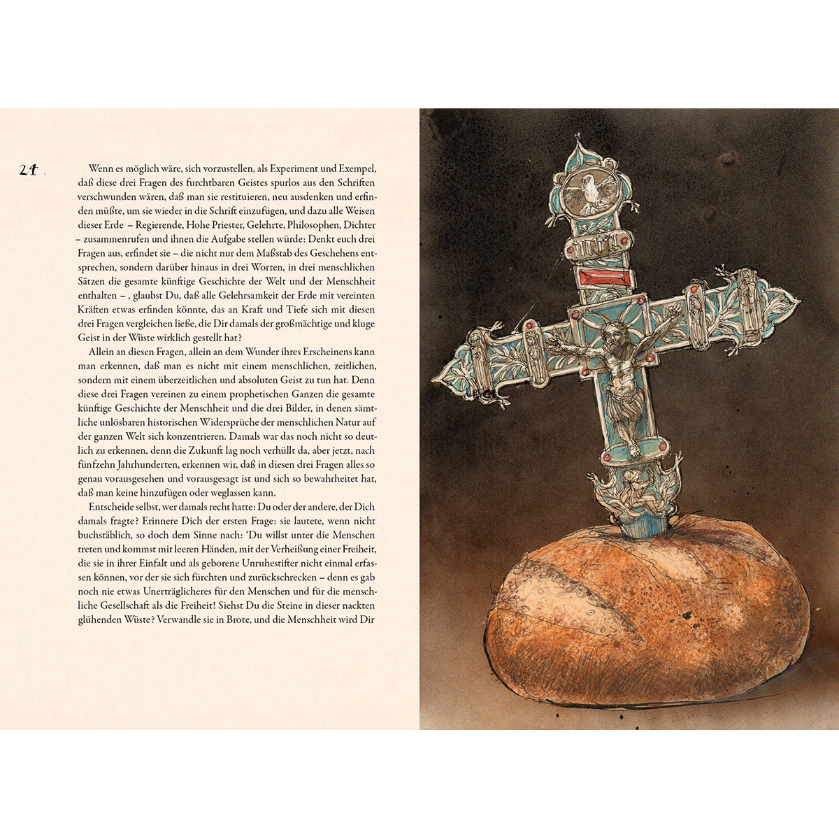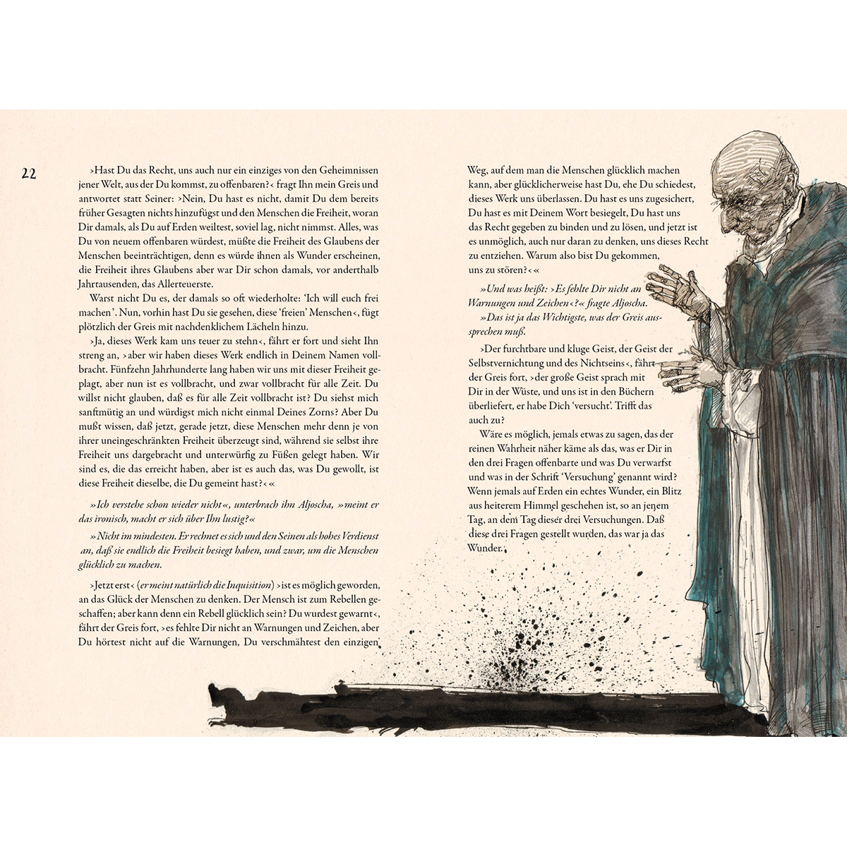 Fjodor M. Dostojewski. Der Großinquisitor. Vorzugsausgabe. - Belletristik Kunstbücher Geschichte Essen & Trinken Wissenschaft Ratgeber Design Fjodor M. Dostojewski. Der Großinquisitor. Vorzugsausgabe.. 19 x 28 cm, 56 S., 24 farb. Abb., Fadenheftung, Steifbroschur, Schuber, lim., 120 Expl., sign., num., Grafik 18 x 27 cm, Federzeichnung als Giclée auf Bütten, sign. Beschreibung In Dostojewskis berühmter Erzählung als Teil des Romanwerks »Die Brüder Karamasow« tritt der greise Großinquisitor dem nach fünfzehn Jahrhunderten tatsächlich wieder auferstandenen und unter dem Volk wandelnden Christus entgegen und lässt ihn verhaften, um ihn als Ketzer auf dem Scheiterhaufen der Inquisition verbrennen zu lassen. Vordergründig ging es Dostojewski dabei vor allem um die Kritik am römischem Papsttum und der katholischen Kirche, welcher er den reinen und unverfälschten apostolischen Glauben des russischen Volkes gegenüberstellte. Zunehmend ist der Text im 20. Jahrhundert aber auch als vorweggenommene Parabel auf den modernen totalitären Staat interpretiert worden. So heißt es etwa bei Albert Camus: »Von Paulus bis Stalin haben die Päpste ... die Bahn den Caesaren geöffnet, die sich nur für sich selbst entscheiden.« Und schon Aldous Huxley, der Verfasser der im Jahr 1932 erschienenen Dystopie »Brave New World«, warnte am Ende der 50er-Jahre in der Rückschau auf die Terrorsysteme des Stalinismus und Nationalsozialismus: »Wenn man bedenkt, wie wenig die Großinquisitoren der früheren Zeiten wussten und wie armselig sie ausgerüstet waren, erscheinen ihre Leistungen erstaunlich. Ihre Nachfolger aber, die gut unterrichteten, wissenschaftlich gründlich geschulten Diktatoren der Zukunft, werden zweifellos fähig sein, noch weit Besseres zu leisten.« In der Gegenwart scheint sich diese düstere Prophezeiung in vielen totalitären Staaten der Erde angesichts moderner digitaler Überwachungsmethoden und Kontrolle über die sozialen Medien bereits erfüllt zu haben. Beunruhigend ist dabei vor allem auch die Tatsache, dass in ehemals demokratischen Ländern zunehmend autoritäre Regierungen durch freie Wahlen an die Macht kommen. Trifft denn die Behauptung des Großinquisitors zu, wonach die Menschen nichts mehr beunruhigt und peinigt als die Freiheit Und folgen sie den marktschreierischen Parolen der immer zahlreicher werdenden Populisten nur wegen des Versprechens auf »Brot« - sprich steigenden Konsum und Wohlstand Insofern ist die Inquisitor-Erzählung gerade auch heute - unabhängig von den bei Dostojewski noch im Vordergrund stehenden religiösen Fragestellungen - ein höchst aktueller und brisanter politischer Text, der in der Gegenüberstellung mit Rainer Ehrts oft doppelbödigen und unverwechselbar ironischen Federzeichnungen dazu einlädt, neu gelesen zu werden und als stetige Warnung vor der weltweiten Bedrohung unserer Freiheit durch totalitäre und populistische Machthaber zu dienen. Die signierte und nummerierte Vorzugsausgaben im illustrierten Schuber wurde mit einer offenen Fadenheftung gebunden, in Handarbeit als aufwendige Steifbroschur zusätzlich liegt eine signierte Grafik des Künstlers bei. ISBN 13: 1477854 Sachgruppen: Hardcover/Belletristik/Erzählende Literatur/Hauptwerk vor 1945 Sprache: Deutsch Kurzbeschreibung Titel: Fjodor M. Dostojewski. Der Großinquisitor. Vorzugsausgabe., Sprache: Deutsch, Maße: 28.00x19.00x2.00 cm, Gewicht: 400 g, Verkäufer: ebay@froelichundkaufmann.de, Schlagworte: Der Großinquisitor, Fjodor M. Dostojewski, Literatur, Klassiker bis 1900, Buch, Illustriert von Rainer Ehrt Powered by INFORIUS