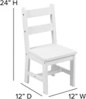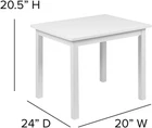 Flash Furniture Kyndl Kids Solid Hardwood Table and Chair Set for Playroom, Bedroom, Kitchen - 3 Piece Set - White Product Details Product Care Instructions: CD-Clean and Disinfectant Material: Rubberwood (Parawood) Manufacturer: Flash Furniture Item Weight: 28.5 pounds Product Dimensions: 24 x 20 x 20.63 inches Country of Origin: Vietnam Item model number: TW-WTCS-1001-WH-GG Assembled Height: 20.63 inches Assembled Width: 20 inches Color: White Brand: Flash Furniture Size: 3-Piece Set Item Depth: 24.0 inches Item dimensions L x W x H: 24 x 20 x 20.63 inches Item WeightStyle: 28.5 PoundsClassic Assembly RequiredShape: YesSquare Reclaim your kitchen, dining room or coffee table and give your children a space that is all their own with this wood table and chair set recommended for ages 5-7. BENEFICIAL: Teaches responsibility, independence and encourages creativity when used as an activity table ATTRACTIVE: Neutral white wood finish adapts well to any décor SAFE & STRONG: Rounded edges for safety, mortis and tenon construction with wood screw reinforcements for strength and durability PRODUCT MEASUREMENTS: Table Size: 20"W x 24"D x 20.625"H; Chair Size: 11-12"W x 12"D x 12"H; Seat Size: 11-12"W x 11.875"D x 11.25"H; Back Size: 10.875"W x 13"H In a world where everything is always too big or too tall, life can be frustrating for your little ones so give them a space that is uniquely theirs where their feet will actually touch the floor. This white finish, solid wood table and 2 chairs set is the perfect place for a child's creative endeavors, a safe place for clay and markers and the perfect spot for snacks or dinner time. Having their own table and chairs teaches practical skills like wiping the table after meals and encourages independence so they can do things for themselves. When you are looking for seating that will hold those most precious to you, quality construction is key. mortise and tenon construction has been used for years by master craftsmen and is one of the strongest, most stable joints especially for right angles. Metal screws serve as reinforcements giving this kids wood table and chair set exceptional strength and durability. Recommended for ages 5-7, this wood table and 2 chairs set will hold up to 170 lbs. Rounded edges help keep children safe from sharp corners. We know you want to spend quality time with your children not putting things together so this set assembles in under an hour with the included tools. Easily clean up messes with water and follow with a dry cloth to keep this wooden kids table and chairs set looking new. The space saving design of this set allows it to be used in the living room, dining room, play room, kitchen or bedroom.