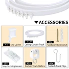 ➦ Ceiling curtain track can be cut down to specific size using a tooth hacksaw and easily combines with another tracks; ➦ Curtain track ceiling mount can bend and twist to fit a range of window shapes and sizes, not easy to crack or break. CURVED CURTAIN TRACK ➦ Curtain track rail, open and close your curtains with ease; smooth and provide easy and private life; ➦ Mounted track rollers on the surface of sliding curtain track system reduces the noise users make when sliding. How to use ? 1. The curtain rail is rolled up, straighten the rails. 2. Use the provided anchors (if it is drywall) to install the brackets and tighten them about 10 to 12 inches apart. For tight bends, add additional brackets as needed. 3. Attach the end cap to one end of the curtain rail. Slide the track rollers onto the rail. 4. Snap the curtain rail into the installed ceiling bracket. Package Includes 1 x 5m(16.4 FT) Flexible Curtain Track 40 x Track Rollers 40 x Iron Curtain Hooks 15 x Snap-on Ceiling Brackets 4 x End Covers 【Flexible But Durable】Our curved ceiling track can bend and twist into any shapes to fit any kind of window shapes and sizes, no need any special tools. Made of durable and strong PVC plastic to be flexible, and the metal inside is strong enough to not crack or break. 【5 Meters Bendable】 The total length of windows curved track is 16.4ft (5 meters), you are allowed to extend the track by connecting the ends to form one continuous track, or tailor the curtain track down to a size with a fine-tooth hacksaw. 【Multi-Purpose Use】The bendable ceiling curtain track is the best choice for home curtain installation, works great for curtain panels, room dividers, sheers, bay window treatment, shower track, RV curtain track and so on. 【Curtain Track Set】 There comes with 1pc 5m(16.4 FT) flexible curtain track, 40pcs track rollers, 40pcs iron curtain hooks, 15pcs snap-on ceiling brackets and 4 ends covers and and required hardware. With everything you need for the whole curtain system installation process! 【Easy to install】The accessories of track rollers and detachable ceiling brackets can help you assemble the curtain rail in a smooth and easy way, easy to complete, the installation steps can be referred in the product video.