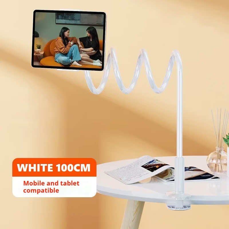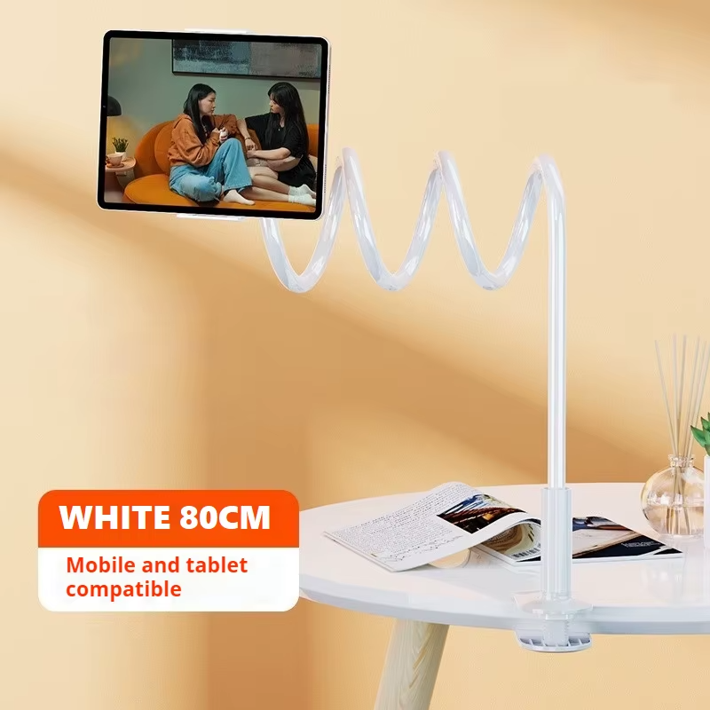 📱 Flexible Gooseneck Phone Holder – Adjustable Lazy Arm Stand for Bed & Desk Enjoy hands-free comfort anytime, anywhere! This flexible gooseneck phone holder is the ultimate solution for watching videos, video calling, reading, or browsing comfortably without holding your phone. Designed with a sturdy clamp and 360° rotating arm , it adjusts freely to your preferred angle—perfect for use in bed, at your desk, in the kitchen, or anywhere you need convenience. 🌟 Key Features: ✅ 360° Adjustable Rotation: Easily position your phone to any angle for the perfect view. ✅ Strong & Stable Clamp: Attaches securely to desks, nightstands, headboards, and tables up to 2.75 inches thick. ✅ Flexible Gooseneck Arm: High-quality aluminum-magnesium alloy ensures both flexibility and stability. ✅ Universal Compatibility: Fits most smartphones from 4 to 7 inches (iPhone, Samsung Galaxy, Google Pixel, etc.). ✅ Hands-Free Convenience: Ideal for watching movies, TikTok, video chatting, cooking tutorials, and more. ✅ Soft Silicone Pads: Protect your phone and furniture from scratches. ✅ Easy to Install: No tools required — clamp and adjust in seconds! 📦 Specifications: Material: Metal + Plastic Mount Type: Clamp / Clip Color Options: Black / White Length: Approx. 70cm (27.5 in) Compatible Devices: All smartphones (4"–7") Mounting Location: Desk / Bed Frame / Table Edge Weight: Lightweight and portable 📦 Package Includes: 1 x Flexible Gooseneck Phone Holder 1 x Desk Clamp Mount 🚚 Fast U.S. Shipping Ships directly from our U.S. warehouse for quick delivery and reliable service . 💬 Why Choose This Holder? Whether you’re binge-watching shows, attending online meetings, or video chatting with friends, this adjustable gooseneck stand gives you the perfect hands-free experience. Enjoy your screen comfortably — no more arm strain, neck pain, or awkward angles! 💡 Tip: Use it on your desk for video calls or clamp it to your nightstand for late-night streaming. It’s strong, stable, and stylish — a must-have accessory for your everyday comfort.