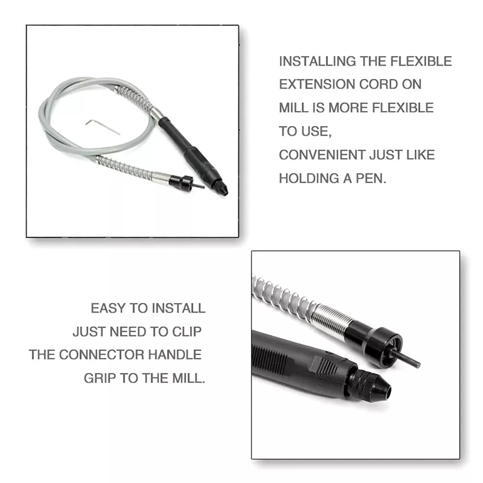 Product Description Features: Made of quality plastic material, strong and durable for use. Installing the flexible extension cord on mill is more flexible to use, convenient just like holding a pen. Universal part, as long as your electric grinder tool and electric drill can fit for 0.3175cm diameter clamping. Easy to install, just need to clip the connector handle grip to the mill. Specifications: Condition: 100% Brand New Material: Rubber+Iron Colour: as picture Total Length: approx. 105cm/41.34in Clamping Range: 0.3mm-3.2mm Package Included: 1 x Flex Shaft 1 x Hexagonal Wrench Shipping Returns Contact Us Payment 1. Items sent from US warehouse. 2. Receiving time = Processing time + Shipping time. 3. Processing Time: Around 1-2 business Days. 4. Shipping Time: 3-5 business day. It may have a little delay during some holiday (such as Christmas), any problem, please feel free to contact. Always believe we can figure things out with communication, if it comes to return, the pacakge must be intact and the same as you receive. If you have any questions, please feel free to email our service specialists 24 Hours a Day, 7 Days a Week. We will reply you ASAP. Return/refund is accepted within 30 days after the buyer receives the item. NO exchange will be accepted after 30 days from the date when the item is received. Please contact us first before returning your product!!! If you have any questions, our Customer Service staffs welcome you to email us. We strive to answer all questions and resolve any problems as quickly as possible. We care about our valued customers, and will always try to help you. So if you have any problems, You can contact us 7*24, we will reply at the first time. We accept all verified payments from ebay. Orders will be shipped after receiving cleared payment. Shipping 1. Items sent from US warehouse. 2. Receiving time = Processing time + Shipping time. 3. Processing Time: Around 1-2 business Days. 4. Shipping Time: 3-5 business day. It may have a little delay during some holiday (such as Christmas), any problem, please feel free to contact. Returns Always believe we can figure things out with communication, if it comes to return, the pacakge must be intact and the same as you receive. If you have any questions, please feel free to email our service specialists 24 Hours a Day, 7 Days a Week. We will reply you ASAP. Return/refund is accepted within 30 days after the buyer receives the item. NO exchange will be accepted after 30 days from the date when the item is received. Please contact us first before returning your product!!! Contact Us If you have any questions, our Customer Service staffs welcome you to email us. We strive to answer all questions and resolve any problems as quickly as possible. We care about our valued customers, and will always try to help you. So if you have any problems, You can contact us 7*24, we will reply at the first time. Payment We accept all verified payments from ebay. Orders will be shipped after receiving cleared payment. Charging Cradle Base Charger Stand Cable For Bose SoundLink Revolve/Revolve+ 13.99 USD 19.99 USD Watch Movement Generic 710 Pallet Fork For ETA 2824-2 2836-2 2834-2 Repair Parts 13.99 USD 1.99 USD 4 Gears UBEC-8A 6V-36V 2-8s LiPo Independent power supply module For FPV Drone 20.69 USD New Power Wheels Adapter Component For AEG/For RIDGID 18V Lithium Battery 19.99 USD Cooling Gel+Leather Wireless Headphone Ear Pads Cushion Cover For PS5 PULSE 3D 14.99 USD Outdoor Primitive Fire Starter Tool Wood Bow Drill Survival Friction single 18.99 USD Watch Movement Cleaning Clay Rubber Putty Cleaner +Wooden Stick for Watchmakers 12.19 USD 1 Set Front Rear Differential Gear Kit Replacement for 1/10 HSP 94123 RC Cars 19.99 USD 1Pair Rear Suspension Travel Limit Straps for Traxxas 1/7 UDR Hot Racing RC Car 15.69 USD PCIE 4X Expansion Card PCI-E to USB 3.1 Type C Dual Port Adapter Module 22.99 USD 19.99 USD Power Board Replacement PCB Board Power Switch Motherboard For Sega Game Gear 20.99 USD 19.99 USD 1* Bluetooth Remote Control Scrolling Ring Mobile Phone Scroller Remote Control 13.99 USD 43mm Brass Roller Guitar Nut Guitar Repair Part For LP/SG/ES Standard/Custom 16.99 USD 1.99 USD New 6mm Guitar Tremolo Arm Whammy Bar For Fender & Squier Strat Electric Guitar 8.99 USD 19.99 USD Lens Mount Adapter For M42 Screw to For Olympus 4/3 E-5 E-620 E-600 E-520 Camera 13.69 USD Rear Dog Bone Front Drive Shaft CVD For Wltoys 144001 124016-19 1:12/1:14 RC Car 10.69 USD 19.99 USD WP8318084 Washing Machine Lid Switch 8318084 For Whirlpool Kenmore Roper Estate 11.99 USD Yagi Antenna Signal Booster Strengthen Kit For DJI Mini 3/Mini 3 Pro Drone 17.99 USD Model Glue Dispensing Aid Stick Applicator Pen For Gundam Model Accessories 10.69 USD 1.99 USD 2Pcs Earpads Cushion Covers For Corsair Virtuoso RGB Wireless SE Headset Replace 11.99 USD Type C Charging Interface Power Motherboard For JBL Xtreme 3 Version GG Speaker 27.99 USD M.2 NVME SSD Key M + NGFF SATA SSD Key B to U.2 SFF-8639 Adapter Supports 2280 16.69 USD 19.99 USD 1Pc Replacement Bearing Housing For Stihl FS38 FS45 Trimmer Parts 4144-640-59 16.39 USD Backlit Handheld Microphone For QYT KT-8900 KT-UV980 KT-7900D KT-780plus Radio 22.99 USD New CGA Graphics Vintage Card 16Kb 6845 Color Graphic Adapter ISA For IBM PC 40.99 USD Watch Clutch Spring For ETA 7750 Movement Part No. 8320 Watch Accessories 8.99 USD Water Nozzles Replacement For iRobot Braava Jet 240 241 244 M6 Smart Mopping[ 16.99 USD Remote Control LED Light Strip Kit For RC Fixed Wing Airplane Flying Wing Plane/ 11.99 USD Black CNC Aluminum Motorcycle Windshield Mount Accessories For Gopro Camera 21.99 USD 12V Car Home Audio Mini Stereo Amplifier 2.1 Channel HiFi Bass Speaker Power Amp 23.99 USD powered by