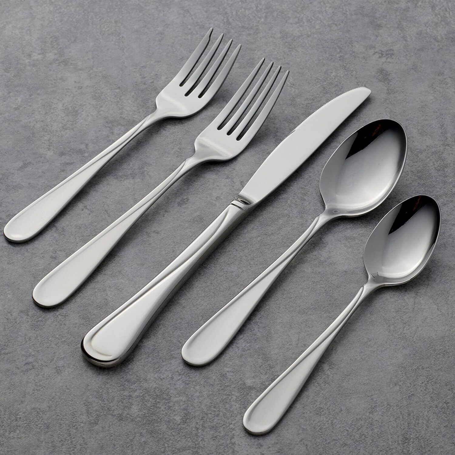 Number of Pieces 45 Material Stainless Steel Color Silver Product Care Instructions Dishwasher Safe Recommended Uses For Product dining_table Special Feature Durable Finish Type Polished Included Components Set includes 8 each: Dinner knife, Dinner Fork, Salad/Dessert Fork, Soup/Cereal Spoon and Teaspoon plus 2 Serving Spoons, 1 Serving Fork, 1 Sugar Spoon, and 1 Butter Knife Set includes 8 each: Dinner knife, Dinner Fork, Salad/Dessert Fork, Soup/Cereal Spoon and Teaspoon plus 2 Serving Spoons, 1 Serving Fork, 1 Sugar Spoon, and 1 Butter Knife Style 45-Piece Flatware Set See less About this item WHO IT’S FOR: Those seeking stainless steel silverware that blends modern innovation and classic sophistication in order to bring stylish essentials to everyday meals and special occasions. WHAT'S IN THE BOX: Includes a 45-piece flatware set for 8 people, plus a 5-piece serving set. Each of the 8 flatware place settings includes a dinner fork, salad fork, dinner knife, dinner spoon, and teaspoon. Serving set includes a serving spoon, pierced serving spoon, sugar spoon, butter knife, and serving fork. WHAT IT’S MADE OUT OF: The Oneida Flight 45-piece flatware set is made of high-quality 18/0 stainless steel for everyday durability and rust-resistance. HOW TO CARE FOR IT: This Oneida flatware is dishwasher safe for added convenience and easy clean up. Number of Pieces 45 Material Stainless Steel Color Silver Product Care Instructions Dishwasher Safe Recommended Uses For Product dining_table Special Feature Durable Finish Type Polished Included Components Set includes 8 each: Dinner knife, Dinner Fork, Salad/Dessert Fork, Soup/Cereal Spoon and Teaspoon plus 2 Serving Spoons, 1 Serving Fork, 1 Sugar Spoon, and 1 Butter Knife Style 45-Piece Flatware Set Item Weight 0.01 Ounces Is Stain Resistant Yes Is Dishwasher Safe Yes UPC 078737042990 078737345459 Global Trade Identification Number 00078737042990, 00078737345459 Manufacturer Oneida Product Dimensions 11 x 11 x 3 inches Item Weight 0.01 ounces