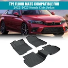 Specification Type: Floor Mat Set Material: TPE Rubber Number of Pieces: 3 color: Black Fit Type: Vehicle Specific Fit Package Dimensions: (inch): 30*6*22 Package Weight: (lbs): 11 Warranty: 90 days warranty for quality problems Condition: New Fitment 2022-2023 Honda Civic Features & Benefits Product Description: Introducing our top-of-the-line Floor Mats, meticulously designed to withstand all weather conditions, from rain and snow to mud and sand. These mats are a perfect blend of functionality and durability, offering superior protection to your vehicle's interior. Constructed with premium quality TPE rubber, these mats are non-toxic, odorless, and environmentally friendly. They are highly resistant to wear and tear, maintaining their shape and performance even in extreme temperatures. This durability ensures long-lasting protection for your vehicle's interior, keeping it clean and fresh. One of the standout features of these Floor Mats is their textured surface. This design effectively traps dirt and debris, making the mats incredibly easy to clean. A simple hose down is all it takes to restore them to their pristine condition. Safety is also a key feature of our Floor Mats. The non-slip backing ensures that the mats stay securely in place, reducing the risk of slipping and sliding. This feature provides an extra layer of safety, especially during wet or muddy conditions. Installation is a breeze with our Floor Mats. No tools or additional hardware are required. Simply remove your existing mats, clean the floor, and place the new mats in their designated positions. The mats are designed to ensure a perfect fit, providing full coverage and protection. Invest in our Floor Mats today and enjoy a clean, safe, and comfortable driving experience.