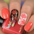 You will receive (1) bottle of Floral Correlation Stamping Polish (Coral). Size of bottle is 0.37 fl oz (11 ml). 7 Free (No Formaldehyde, No Dibutyl Phthalate (DBP), No Toluene, No Formaldehyde Resin, No Camphor, No Triphenyl Phosphate (TPHP), No Xylene) Cruelty Free & Vegan Made in China Ingredients: Butyl Acetate, Ethyl Acetate, Acrylate, Copolymer, Nitrocellulose, Denatured Ethanol, Acetyl Tributyl Citrate, Isopropanol. May Contain: Mica, CI 77266, CI 77891, CI 19140, CI 15850, CI 15880, CI 42090, CI 77742, CI 77510 Warning: Due to nail polish being considered a hazardous material we are only allowed to ship nail polishes within the continental United States and by ground service. There are no exceptions to this rule no matter what shipping you selected. Please choose FedEx Ground (2-6 business days) or USPS Ground (5-15 business days) shipping on checkout. How To Use: -Remove your new stamping plate from its packaging and remove the plastic protective film from over the metal. When you first receive your plate and after every use wipe clean your plate with acetone or non-acetone nail polish remover without oils. Сlean your stamper with tape by using the sticky side to remove dry polish. -Quickly apply a thick layer of stamping nail polish in a few strokes over the design you wish to stamp. -Hold a plastic card firmly at a 45 degree angle and lightly scrape across the plate to remove excess polish. Try to only scrape once, do not push card to plate too hard and work as quickly as possible to avoid drying. -Immediately after scraping, quickly transfer the design to your stamper by lightly rolling once across the design from one side to the other or pushing once straight into the design. If your image does not transfer you may need to work faster, scrape differently (less pressure or new angle), prime your stamper (with acetone or gentle nail file/buffer) or try another opaque nail polish that doesn’t dry very fast. -Quickly transfer the image from the stamper onto a nail with an oil free and completely dry base color. With a squishier stamper push the stamper straight to the nail, with other stamper heads it might work better to roll it once from side to side to transfer image. Remove excess nail polish from your skin and cuticles by using a flat brush or cotton swab dipped in acetone or nail polish remover, you could use tape to lift excess polish from your skin as well. -When design is completely dry on your nail, apply a layer of fresh top coat with as few strokes as possible. Place a big drop at the cuticle and hold brush parallel to the nail while applying trying not to touch the nail with the bristles, this helps prevents smearing. We love to see your beautiful nail designs!