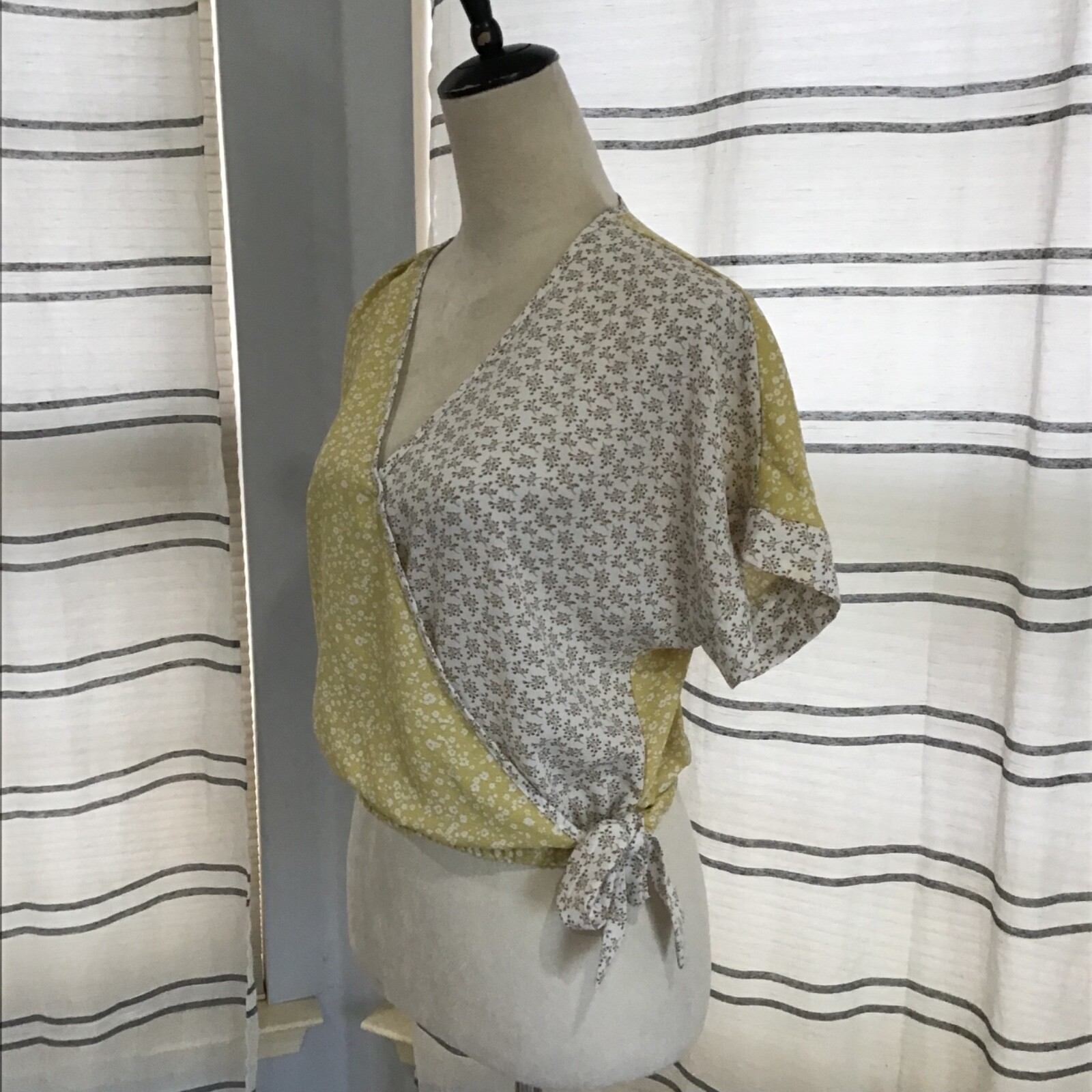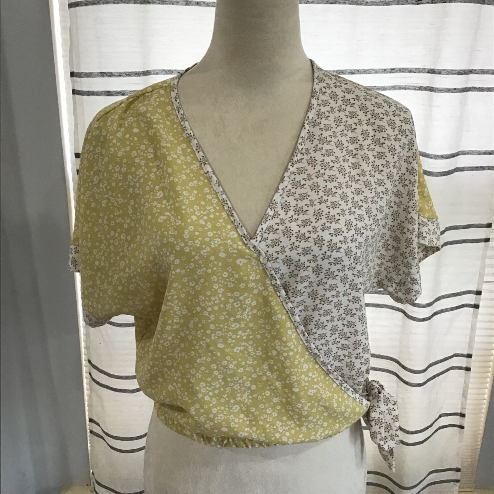 Paper Crane Women SM Floral Wrap Blouse Cottagecore Coquette Cropped Boho Hippie