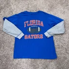 Florida Gators Shirt Mens Large Blue Gray Layered Tee NCAA Football University Condition: - Tiny pinhole in sleeve. - Overall in good used condition. - No stains. - Nice graphic on chest. Size: - Mens large. Measurements: - Previous washings may change the sizing written on the tag. - Please refer to the photos above for all measurements. - Please compare our measurements to that of one of your favorite garments. - Please note, item measurements are approximate . All items are bagged and sealed after being photographed, then stored in a smoke free environment to ensure the item is exactly the same as when photographed. I carefully package and ship daily. Feel free to contact me with any questions. All items have been washed per eBay standards & policies.