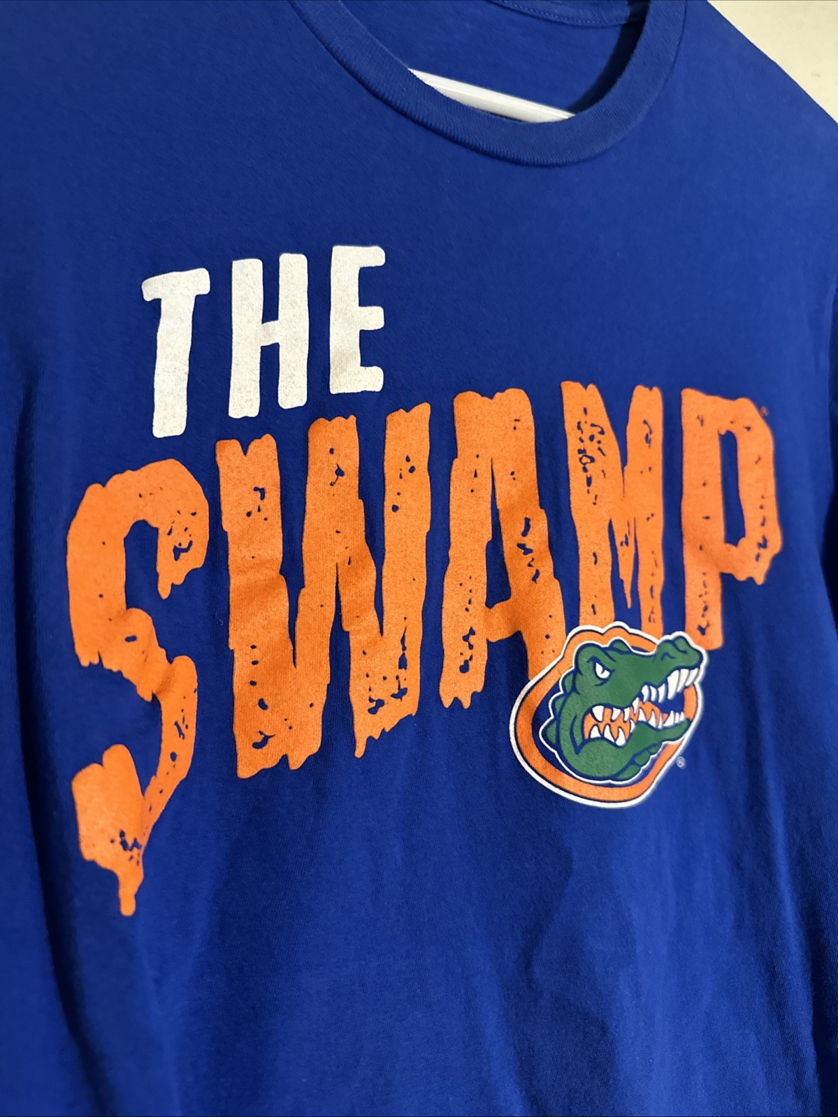 🛠️ BLACK FORGE COLLECTIVE SHIPPING DISCLOSURE 🛠️ Every order is professionally packed with precision and care to withstand the grind of transit. We don’t just ship—we forge your order’s path to you. 🔒📦 The product is a men's Florida Gators shirt in size small. This blue short sleeve t-shirt is made of cotton and features a solid pattern with a crew neck neckline. Perfect for fans of the college sports team, this regular fit shirt is suitable for wearing in any season: winter, summer, fall, or spring. Ideal for casual wear, this shirt is a great way to show off team spirit and support for the Florida Gators.