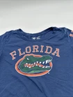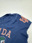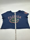 The product is a Women's size Large blue T-shirt featuring a graphic print of the Florida Gators team from T University. It is officially licensed fan apparel from the Dominican Republic. Perfect for female fans of the Florida Gators football team to show their support and pride in a stylish way. *Check the images above for the flaws and measurements of the item.