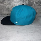 The product is a teal Florida Marlins baseball cap from the '47 Brand Cooperstown Collection. It is a one size fits all hat featuring the team's logo. Perfect for fans of Major League Baseball and the Florida Marlins.