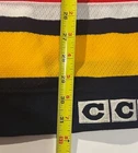 Florida Panthers authentic NHL "Center Ice" Jersey, as worn 1990's-2000's NHL All materials are authentic as worn on-ice in 1990's-2000's NHL, including professional weight "Air-Mesh" fabric, double shoulders, all seams cover-stitched. The 1996 Stanley Cup finals team wore this. All numbers are twill layers and are sewn on. Patches are embroidered and sewn on, as is awesome central logo.. NHL official logo and CCM Logo on back hem. Fighting strap included. Jersey has been professionally cleaned, is in Very Good Condition. See pictures for exact measurements. Item in the photo is exactly the item you will receive. Free Shipping. Hangs beautifully and looks great! Note: This Jersey is part of the FAVA Collection being presented by TNC Collections . View the other listings of TNC Collections of authentic and vintage athletic jerseys.