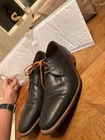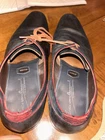 Well kept black/very very dark navy, with red accent, orange laces, and brown soles with black accent. These are handmade leather shoes and very well made at that. They are heavy in a good way when it comes to custom high quality leather shoes this is what you’re looking for. The color pattern and light wear makes these shoes better. They give off seasoned formal with a very light casual (I know how to have a good time better than anyone, while remaining the man and respected vibes). I guarantee you the previous owner was an absolute legend. Give ‘em a polish and shine and you will be thrilled. (Most other ones they do that, the pictures I took are as I got them). I’ll polish them for you if you’d like just let me know. These are great, will last another 40 years, and they are some damn cool shoes. If they fit me I wouldn’t have gotten this far in the description. Sold from a seller who will ensure you are happy. Floris Van Bommel - vintage leather dress shoes - Black/dark navy with red accent dress shoes - genuine leather handmade dress shoes. Original Goodyear welting