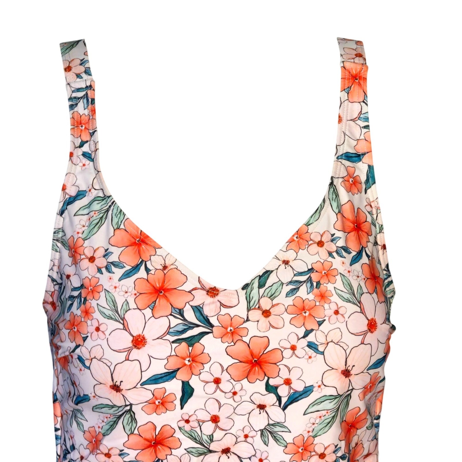 This sleeveless floral dress is crafted from a polyester/nylon blend with a touch of spandex for added stretch. Its built-in bra and lightweight material offer comfort and support. • Built-in bra for added support • Sleeveless design for warm weather • V-neckline for a flattering fit • Lightweight and breathable fabric • Machine washable for easy care Features: • Light, Non-Removable Padding • One Piece Swim Dress, Adjustable Straps Size: Womens L Measurements: Across Chest 15 in / 38 cm Across Waist 13.5 in / 34 cm Across Hips 17 in / 43 cm Total Length 30 in / 76 cm Condition: New With Tags NWT No Smoking Workspace Please review all photos closely before purchasing, buy responsibly, thank you. Please read the description for further details and measurements, Thank you!