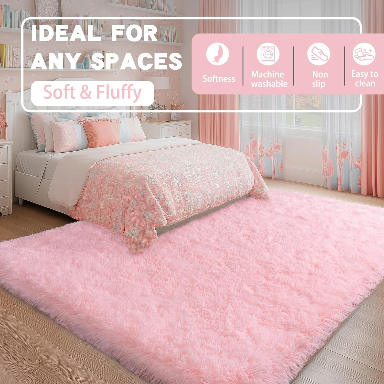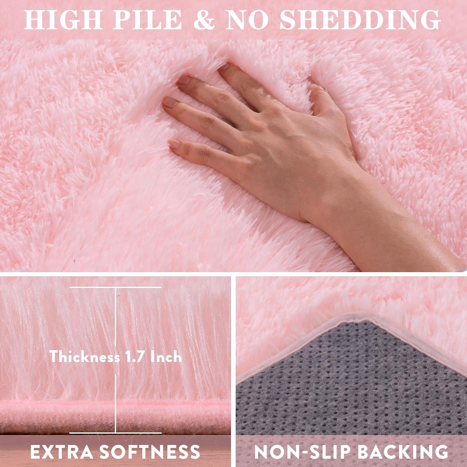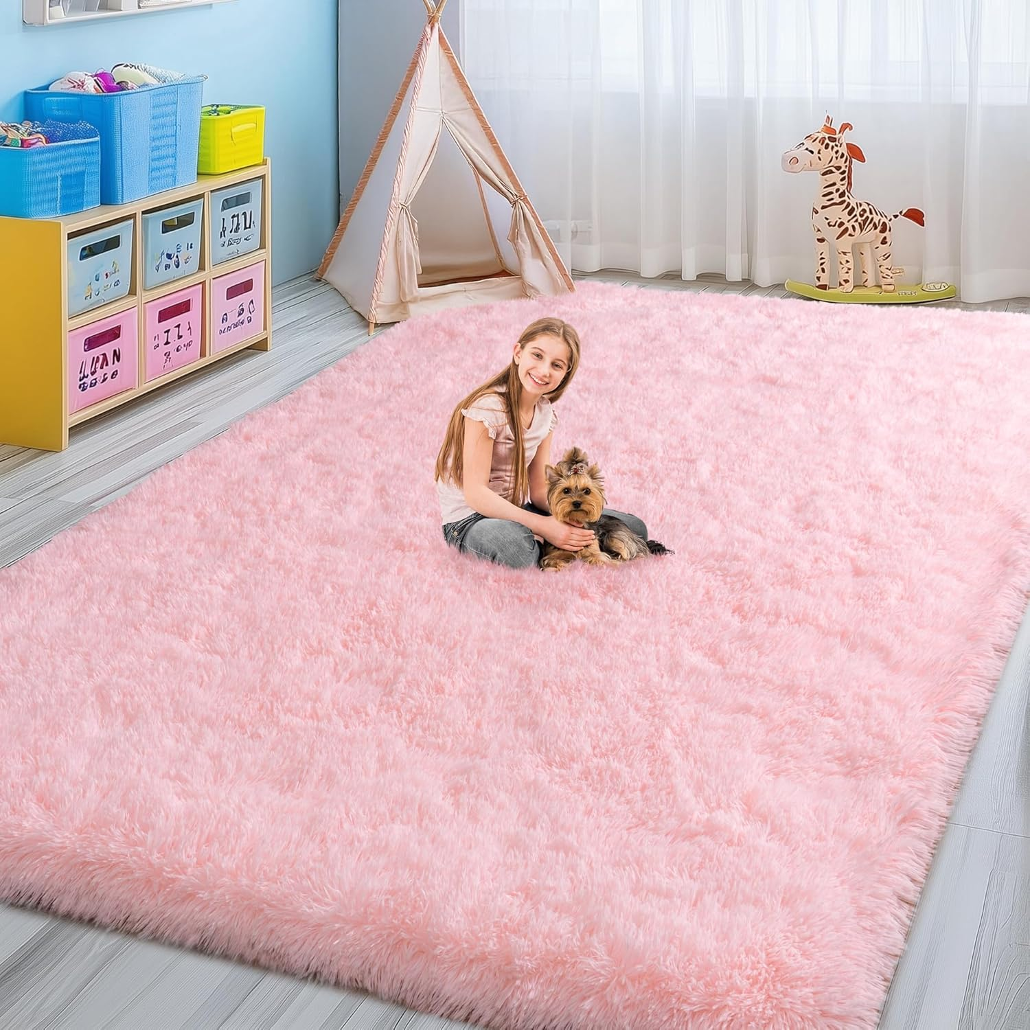 Menu Other Items Feedbacks About Us Contact Us Add To Favorites Fluffy Pink Area Rug for Bedroom Girls, 5X7 Soft Fuzzy Plush Shag Rug for Living Room, Cute Comfy Throw Rug for Kids, Non-Slip Indoor Shaggy Floor Carpet for Nursery Teen Dorms Home Decor Aesthetic 【WHY CHOICE US】 If you want to dress up your room but don't know what to do, then you may need a pink area rug. Add colour, warmth and texture to your room with a simple fluffy rug that also enhances the entire class of the room, making warmth and style so easy 【SUPER SOFT & NON-SLIP BACKING】 Our pink rug is made of polyester material, consisting of 1.4 inches velvety soft top layer, sponge inner layer and non-slip backing, soft touch will make you incredibly relaxing, perfect for various rooms in your home 【VERSATILE】 If you want a comfortable and luxurious feeling space to relax, then choose our pink plush carpet, it is both beautiful and practical, skin-friendly, shag rug can be used in living rooms, bedrooms, baby rooms, children's rooms, girl's rooms, nurseries, playrooms, dormitories, reading areas, it's a wonderful gift for your kids or pets, and it's also an ideal choice for home decor 【EASY TO CLEAN】Please use a low-power hoover or add some neutral detergent, gently hand wash instead of washing in the machine and air dry. As we use vacuum pack plush rugs, please give this cute rug some time (2-3 days) to get better after you receive it 【FALL IN LOVE WITH RUGS】If you need something to add a sense of comfort and well-being, these fluffy shaggy rugs are just the right size to add the perfect texture to your floors, and after a busy day, you can just lay back and relax on the rug. A short relaxation will greatly relieve your fatigue and enhance your sense of well-being Product Description WISH TREE Fluffy Area Rugs for Room Decor Add to Cart Add to Cart Customer Reviews 4.5 out of 5 stars 613 4.5 out of 5 stars 613 4.5 out of 5 stars 613 4.5 out of 5 stars 613 4.5 out of 5 stars 613 4.5 out of 5 stars 613 4.5 out of 5 stars 613 Price $38.97 $ 38 . 97 $26.99 $ 26 . 99 $18.99 $ 18 . 99 $25.64 $ 25 . 64 $24.69 $ 24 . 69 — $25.64 $ 25 . 64 Size 2x3/4x6/5x7/6x9/8x10/9x12Ft 4x6/5x7/6x9/8x10Ft 2x3/4x6/5x7/6x9/8x10/9x12Ft 4x6/5x7/6x9/8x10Ft 4x6/5x7/6x9/8x10Ft 4x6/5x7/6x9/8x10Ft 2x3/4x6/5x7/6x9/8x10/9x12Ft Application1 Girls Kids Bedroom/Nursery Bedroom/Living Room/Kids Room Girls Kids Bedroom/Nursery Bedroom/Living Room/Kids Room Girls Kids Bedroom/Nursery Girls Kids Bedroom/Nursery Bedroom/Living Room/Kids Room Application2 Dorm/Kids Playroom/Apartment Dorm/Playroom/Nursery Dorm/Kids Playroom/Apartment Dorm/Playroom/Nursery Dorm/Kids Playroom/Apartment Dorm/Kids Playroom/Apartment Dorm/Playroom/Nursery High Pile ✔ ✔ ✔ ✔ ✔ ✔ ✔ Softness ✔ ✔ ✔ ✔ ✔ ✔ ✔ Non Slip ✔ ✔ ✔ ✔ ✔ ✔ ✔ How do I fluff my carpet when I receive it? Since the rug is vacuum packed bag, there will be some wrinkles, not fluffy enough which is normal phenomenon. Please lay the carpet flat for 2-3 days and wait patiently for it to recover. Where are these carpets used for? Rug is versatile and used for girls boys bedroom, living room, nursery, dorm, playroom, apartment, home office, study room and more. Soft and cosy shaggy rugs are a great choice for home decor. Item Specification Style Shag rug Weave Type Machine Made Pattern Solid Country of Origin China Is Stain Resistant No Number of Pieces 1 Is Autographed No Material Microfiber Rug Form Type Area Rug Item Thickness 1.4 Inches Indoor/Outdoor Usage Indoor Water Resistance Level Not Water Resistant Room Type Bedroom, Living Room, Playroom, Study Room, Nursery Room Item Weight 4 Pounds Pile Height High Pile Construction Type Machine Made Occasion Housewarming Special Feature Fluffy, Non Slip Number of Packs 1 Color Pink Shape Rectangular Back Material Type Polyvinyl Chloride Product Dimensions 84"L x 60"W Size 5' x 7' (Rectangular) Shipping FREE FREE SHIPPING We are always working hard to ensure your package arrives as soon as possible. Please understand that some factors like weather, high postal traffic, and the performance of shipping companies are outside of our control. We offer free shipping to the lower 48 states. We do not accept P.O. Boxes. Please provide a physical address. If you have a problem or question regarding your transaction please contact us immediately. We will work with you to resolve any problem you may have. Thank you