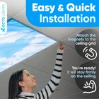 SAFETY FIRST - Peace of mind included with our NFPA 701 Fire Safety Certified Fabric, ensuring your space stays safe and sound. SOFTEN GLARE, SHARPEN FOCUS - Transform harsh lights into a gentle embrace, enhancing focus and comfort with premium fabric. MAGNETIC MAGIC - Effortlessly snap to serenity! Our robust magnets offer a swift, secure transformation of any space. ADD TO CART. AMBIENCE UPGRADE - Elevate your environment in a snap with chic designs & colors, turning mundane to extraordinary. BANISH HEADACHES - Say goodbye to fluorescent-induced headaches, welcoming a soothing light experience that nurtures well-being.