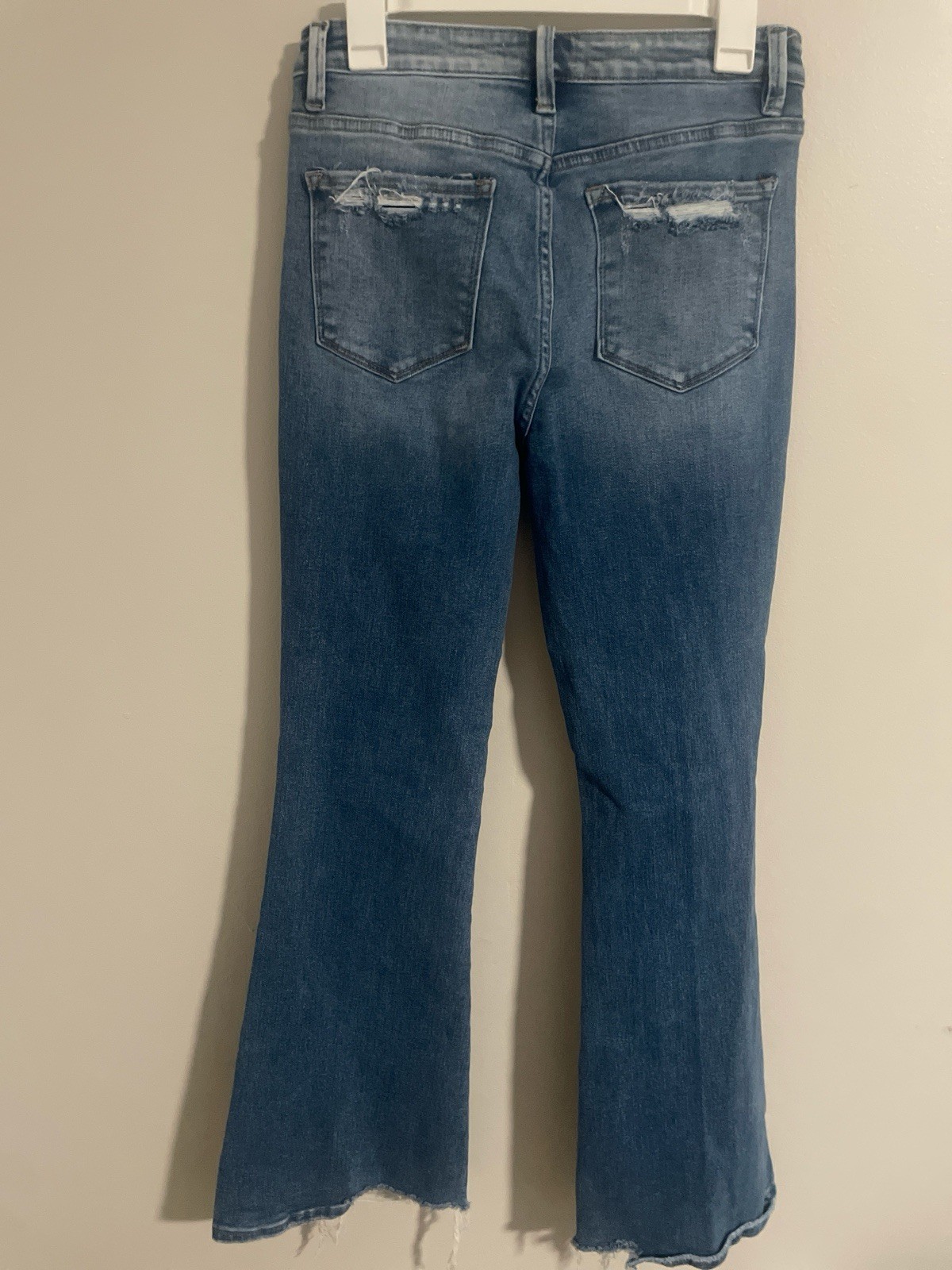 Flying Monkey Distressed Medium Wash Flared Denim Jeans Blue Women