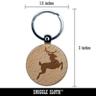 Flying Reindeer Silhouette Engraved Wood Round Keychain Tag Charm