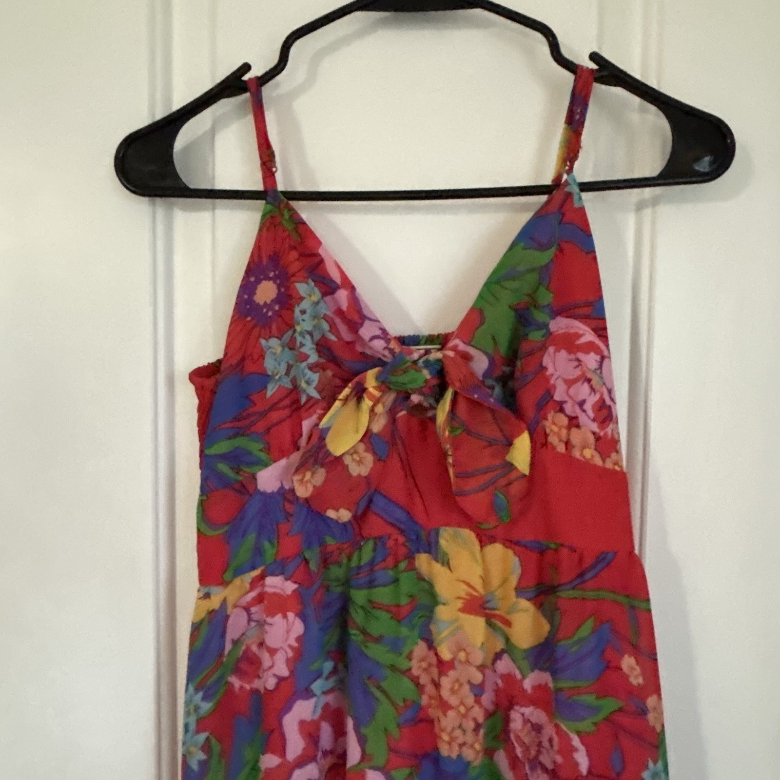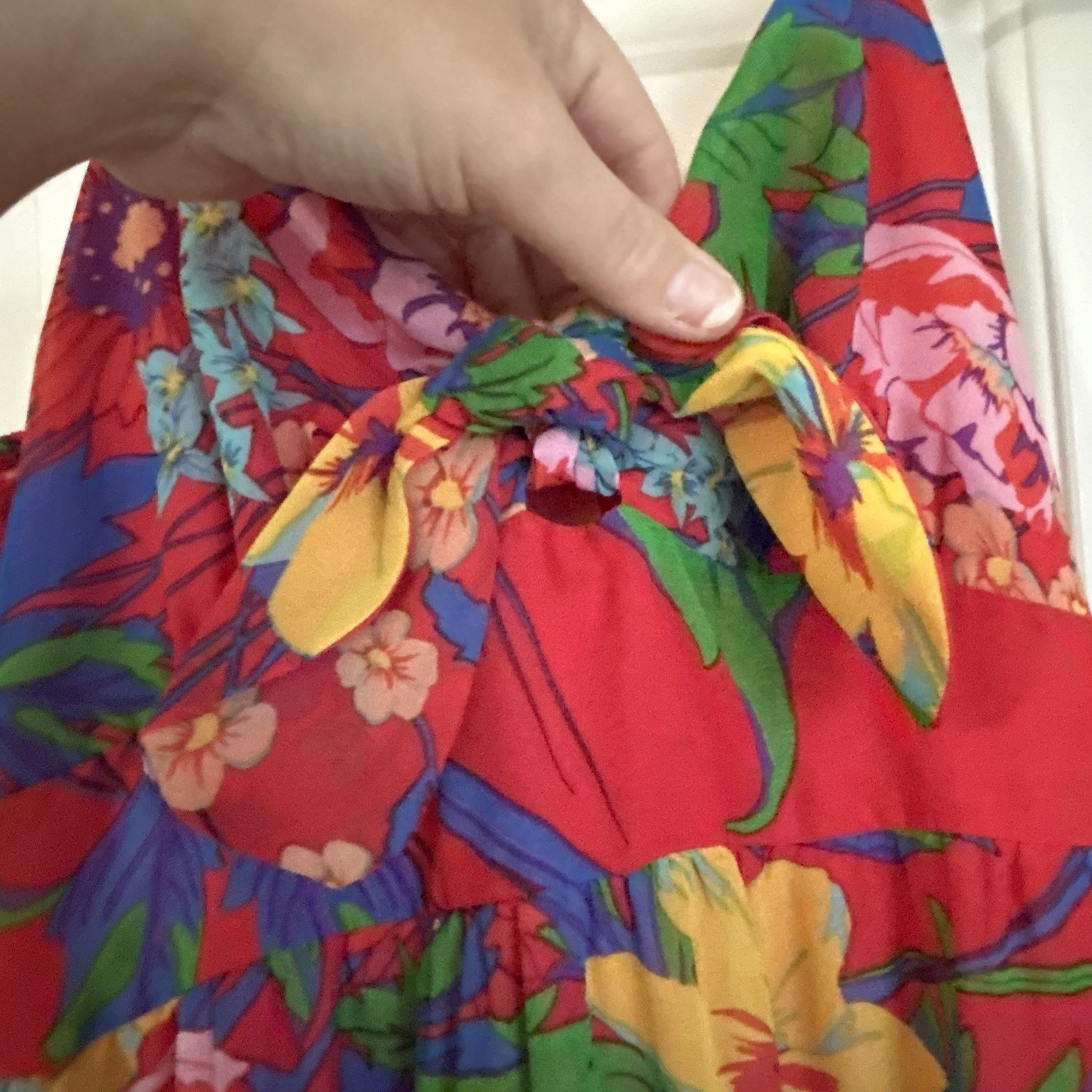 Colorful Floral Midi Dress with Adjustable Waist Tie - Medium