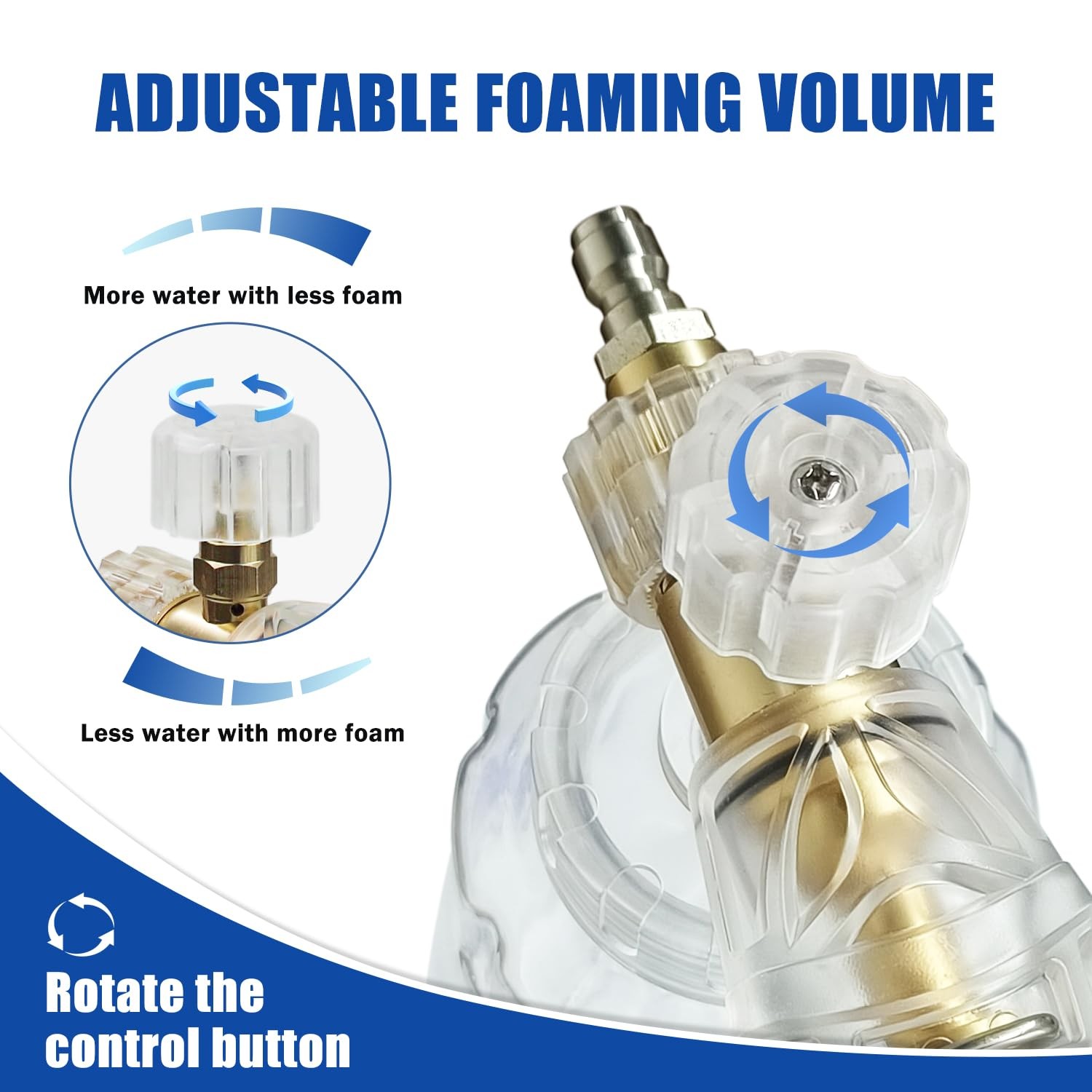 This foam cannon dual connector allows quick switching between foam and water without frequent disassembly. The upgraded foam maker enhances dirt removal, loosening grime and preventing swirl marks. With a clear bottle for soap level visibility, 1/4 quick connector, and impurity-filter, it also lets you adjust foam density and spray range via vertical pattern and air inlet. EFFORTLESS SWITCH - This foam cannon dual connector features two connector ends : a longer one for the pressure washer nozzle and a shorter one for the soap cannon. With the two-way shuttle valve, it enables quick switching between foam and water without frequent disassembly, saving time and enhancing efficiency for cleaning tasks. IMPROVED DIRT REMOVAL - The upgraded foam maker offers excellent foaming effect, achieving outstanding results by loosening dirt while adding extra surface lubrication to help prevent swirl marks during washing. PRACTICAL DESIGN - The clear foam cannon bottle visually reflects the remaining soap. It features a 1/4 Quick Connector for quick and secure attachment to compatible high-pressure washers. Additionally, the upgraded filter block prevents damage from impurities in the water. ADJUSTED FOAM RANGE - Control foam density and spray range with a vertical spray pattern and adjustable air inlet. Turn the top knob to the right for the thickest mixture; Adjust the spray nozzle for a proper sprinkle pattern. ABUNDANT ACCESSORIES - Our package includes a dual connector, a 1L foam bottle, a foam maker, and a replaceable orifice nozzle, along with 5 pressure washer tips and a high-quality towel glove. These thoughtfully selected accessories ensure effective cleaning and long-lasting maintenance. EXCEPTIONAL SERVICE - If you have any question or need technical assistance, please feel free to contact us. We will strive to enhance your experience.