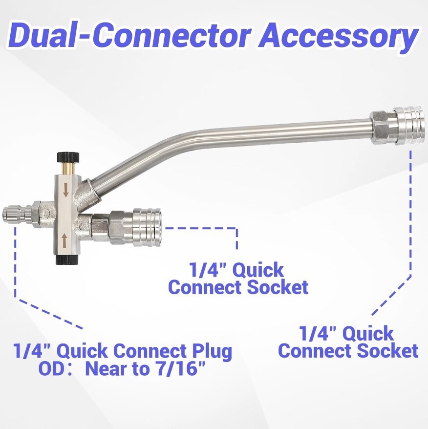 Welcome to My Stores, Happy Shopping. ********************* Foam Cannon for Pressure Washer with Double Tip Attachment, Dual Lanc About This Item ππππ-πππππ πππππππππ: This foam cannon dual connector features two connector ends - one longer end for the pressure wash nozzle and one shorter end for the snow foam lance. It enables uninterrupted water flow while using the nozzle, even when the foam dispenser is attached. ππ π πππππππ ππππππ: The two-way shuttle valve is designed to effortlessly switch between snow foam lance and pressure washer tip tasks, eliminating the need for constant disassembly or replacement. This innovative design saves time and reduces the hassle of changing attachments for different cleaning tasks, making it a versatile and convenient tool for any cleaning routine. ππππππππ πππ ππ π ππππππ: Our upgraded dual spray foam cannon is specifically designed to optimize foam spraying. The container bottle now features a larger mouth, making it effortless to fill with your desired foam solution. Moreover, it boasts an extra-wide neck, ensuring a crack-free experience. πππππππππππ ππππ πππ ππππππ: An additional 1.1mm orifice nozzle is included for improved performance. When the working pressure is below 2500 PSI, this nozzle creates thicker foam compared to the original one. Please utilize the original nozzle if the working pressure exceeds 2500 PSI. πππππππππππ: Ideal for motorcycle and car washing, cleaning roofs, driveways, and siding, as well as washing floors and windows, it proves to be the ultimate product for detailing trucks or SUVs. Experience a new dimension of cleanliness with our innovative foam blaster dual-connector accessory. Specifications Package Dimensions 9.92 x 6.42 x 5.2 inches Item Weight 2.48 pounds Shipping Tracking number: Available We use a selection of shipping services such as UPS, FedEx, USPS etc. We only ship to the lower 48 states, no APO/FPO addresses or PO Boxes are allowed. Local pickups and combined shipping options are not provided at this time. Contact us We can be contacted at any time through eBay messages if you have any questions, comments or product requests. We will respond to you within 24 hours and do our best to help you out! We encourage our customers to contact us with any questions or concerns! We'd like to be sure you are delighted with your purchase.