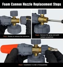 Professional Pressure Washer Foam Cannon Kit Product Features: MAX: 4000 PSI Foam Spray Bottle Volume: 1L Connector Type: 1/4 Inch quick connect and M22 Materials: Stainless Steel, ABS Plastic Package Include 1 x Clear Foam Cannon (Orifice Nozzle 1.25mm) 1 x Additional Orifice Nozzle 1.1mm 1 x Foam Maker 1 x Car Wash Mitt Notes: The effect of using the foam cannon is related to multiple factors such as water, pressure washer, cleaner, spray nozzle diameter, foam maker, etc., which can be adjusted according to the actual situation DIY. Foam Cannon Care Instructions 1. After use it is recommended to use water PA repeated action for cleaning the spray cartridge, cartridge and remaining chemicals in the chamber to prevent blockage. 2. Please select the correct calibre of the spray cartridge according to the power of the car wash machine, do not make it too small, which may cause the machine to run intermittently and block the machine. 3. It is recommended to replace the foam cartridge every six months. Foam consistency can be adjusted as you wish, The(+) means less foam with more water; The(- )means more foam with less water. High-pressure foam spray with deep-tailed wick for even fan spray and greater release of thicker foam. The cannon is also large enough to hold 1 liter of cleaning solution, which is enough for multiple washings. transparent bottle deasign and full copper body, more durability. Original foam spray bottle with 1.2mm Orifice Nozzle is suitable for pressure washer over 1800W, additional orifice nozzle 1.1mm (suitable for 1200-1800W pressure washe) and additional orifice nozzle 1.0mm (suitable for pressure washerup to 1200W). original foam maker 0.13oz and additional foam maker is 0.176oz. Foam cannon suitable for 1000-4000PSI of most pressure Washer. Snow Foam Lance is made of high-quality materials and is designed to produce thick, sudsy foam that is perfect for washing cars, trucks, motorcycles, and more. It is also very easy to use, simple design and intuitive controls. Foam cannon car cleaning kit includes: 1 * Foam Cannon, 1 * Additional Orifice Nozzle 1.1mm, 1 * Additional Orifice Nozzle 1.0mm, 1 * foam maker 0.18oz, 1 * car wash mitt. The foam filter in the spout is recommended to be cleaned regularly and replaced in case of serious blockage.