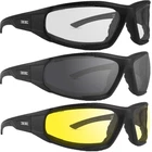 Description You are purchasing 3 pair of Epoch Foam Padded Motorcycle Sunglasses with Black Frames, 1 with Smoke Lens, 1 with Clear Lens, and 1 with Yellow Lens. The Epoch Foam 2 is a favorite foam performance glass. The frame is backed with vented foam to protect your eyes from any dust & debris that comes your way. The lenses are shatterproof polycarbonate. You'll never feel safer. These glasses feature foam that will seal and protect your eyes from dust, wind, and other irritants. If you're looking for motorcycle glasses that will keep you covered with 100% UVA & UVB protection and provide optimal visual clarity, then these are the ones for you. Smoke lenses are best for maintaining the true colors of what you're looking at. They block the most amount of light, which will help to reduce eyestrain if you'll be outside for an extended period of time. Yellow lenses are helpful in low-light conditions because they make an environment appear brighter. They also enhance contrast and depth perception and are great for overcast, hazy and foggy conditions. Epoch Eyewear is a Veteran owned and operated company. We are proud to be a part of the Veteran community and build a company that provides jobs and great products. Epoch Lifetime Warranty - Veteran Owned and Operated Company Shatterproof polycarbonate frame & lenses for maximum protection. Ultra-lightweight full frame with Vented EVA foam padding for extra comfort Meets or Exceeds ANSI Z87.1 Standards - Fit: Large - X-Large 100% UVA & UVB Protection Keeps Your Eyes Safe From the Sun.