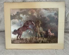 This stunning print by Rosemary Sarah Welch showcases the grace and beauty of equestrian life. The captivating image features a group of horses in a field, captured using the unique foil print technique. This piece is signed by the artist and is sure to add sophistication to any art collection. With its unframed design, this print allows for versatile display options to suit any decor. The theme of this artwork is centered around the world of horses and equestrian culture, making it a perfect addition to any collection with similar subject matter. Add this exquisite print to your collection today. See enclosed photos. From the matte there are a few marks on edge of print