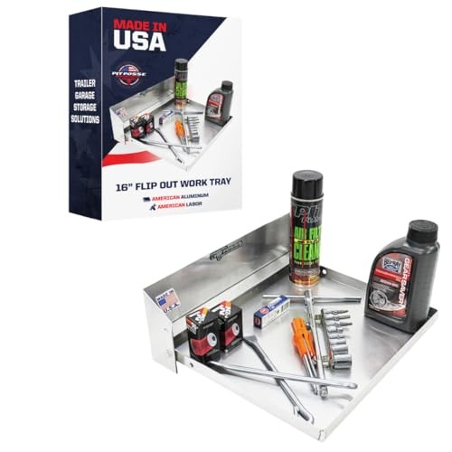 Return Policy Fast Delivery Trusted seller 609 Work Station Fold Flip Out Tray Cabinet Shelf - Garage Shop Enclosed Trailer - Folding Aluminum Multi Use Utility Tray Table Organizer for Motorcycle ATV Car Tools 16"-Made in USA Product Description ✅ 's Folding Work Station Tray is a great way to have the extra work area you need without sacrificing space! Functions as a great place to store small tools or parts, and would be the perfect addition to your garage, enclosed trailer, work shop, or mancave! ✅ Proudly engineered and manufactured in the USA! ✅ Makes a great work bench when needed and can be mounted virtually anyw. Comes with 5 year manufacturer warranty. ✅ Tray size measures 16 inches wide x 14 inches deep. Folds up to 3 inches flat against wall. ✅ Predrilled mounting holes and hardware included for a quick and easy installation Shipping Returns Payment Shipping Shipping is FREE to all addresses other than APO/PO boxes in the lower 48 states. All our stock ships from US-based warehouses. Shipped via USPS or UPS (depending on location and package weight) Unless stated otherwise, all orders will ship within 24-72 hours of your payment being processed. Check our feedback to see the great reviews of FAST shipping we offer. Returns Seller does not accept returns Payment We currently accept payment via eBay managed payments only. Once payment is cleared, we will dispatch your shipment within 1-3 business days. Please refer to the "Shipping" tab for more information regarding shipping speed to your destination.