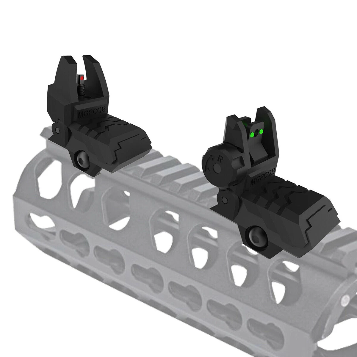 Foldable Flip-Up Iron Sights with Fiber Optics for Dual Aiming Precision