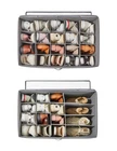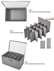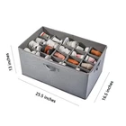 The dimensions of the shoe storage box are 26.5*16.5*13 inches, with 20 compartments capable of accommodating up to 20 pairs of shoes. Each compartment measures 5.2*4.2 inches, suitable for use in bedrooms, garages, basements, and dormitories.